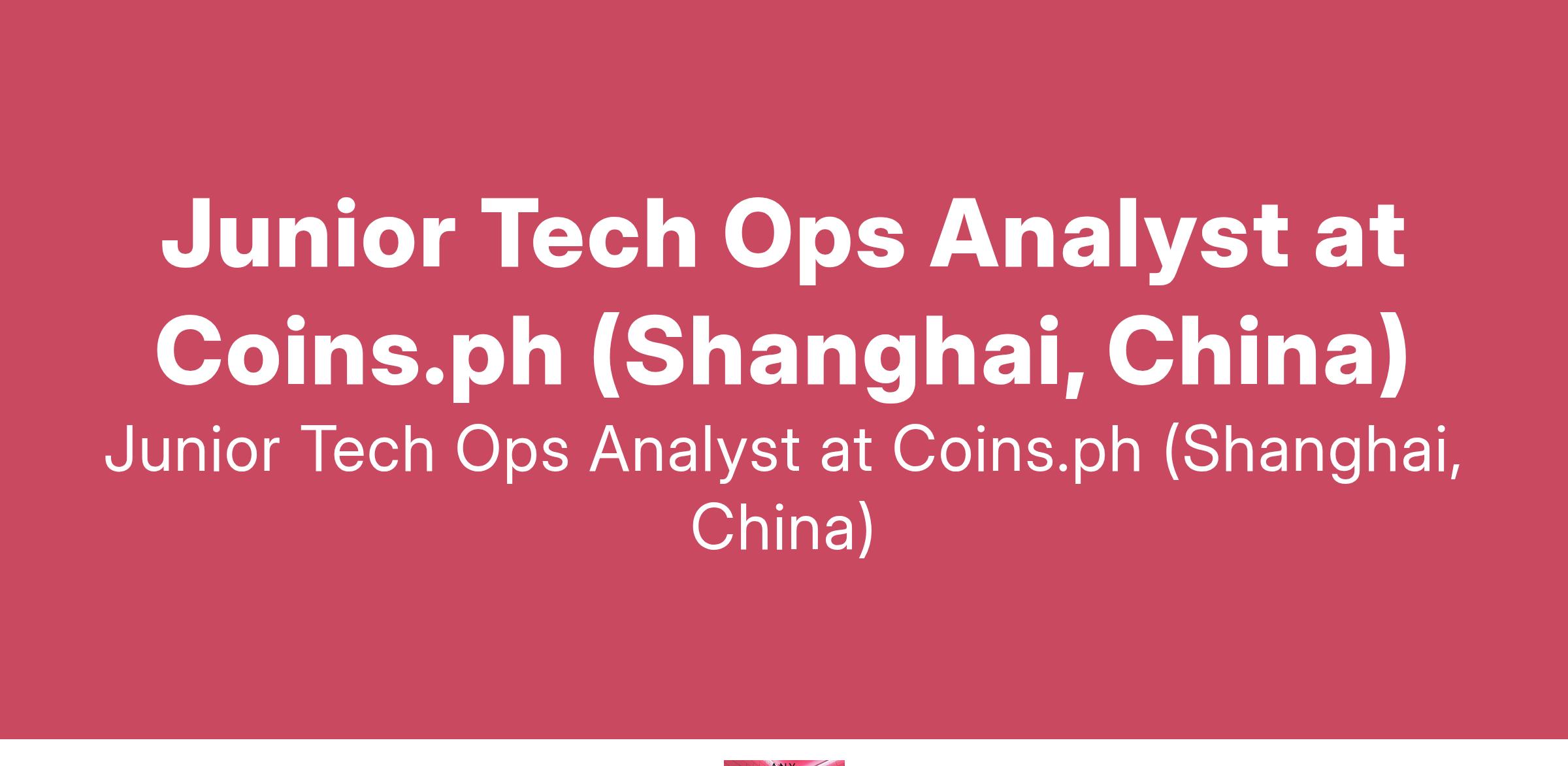 Junior Tech Ops Analyst at Coins.ph (Shanghai, China)