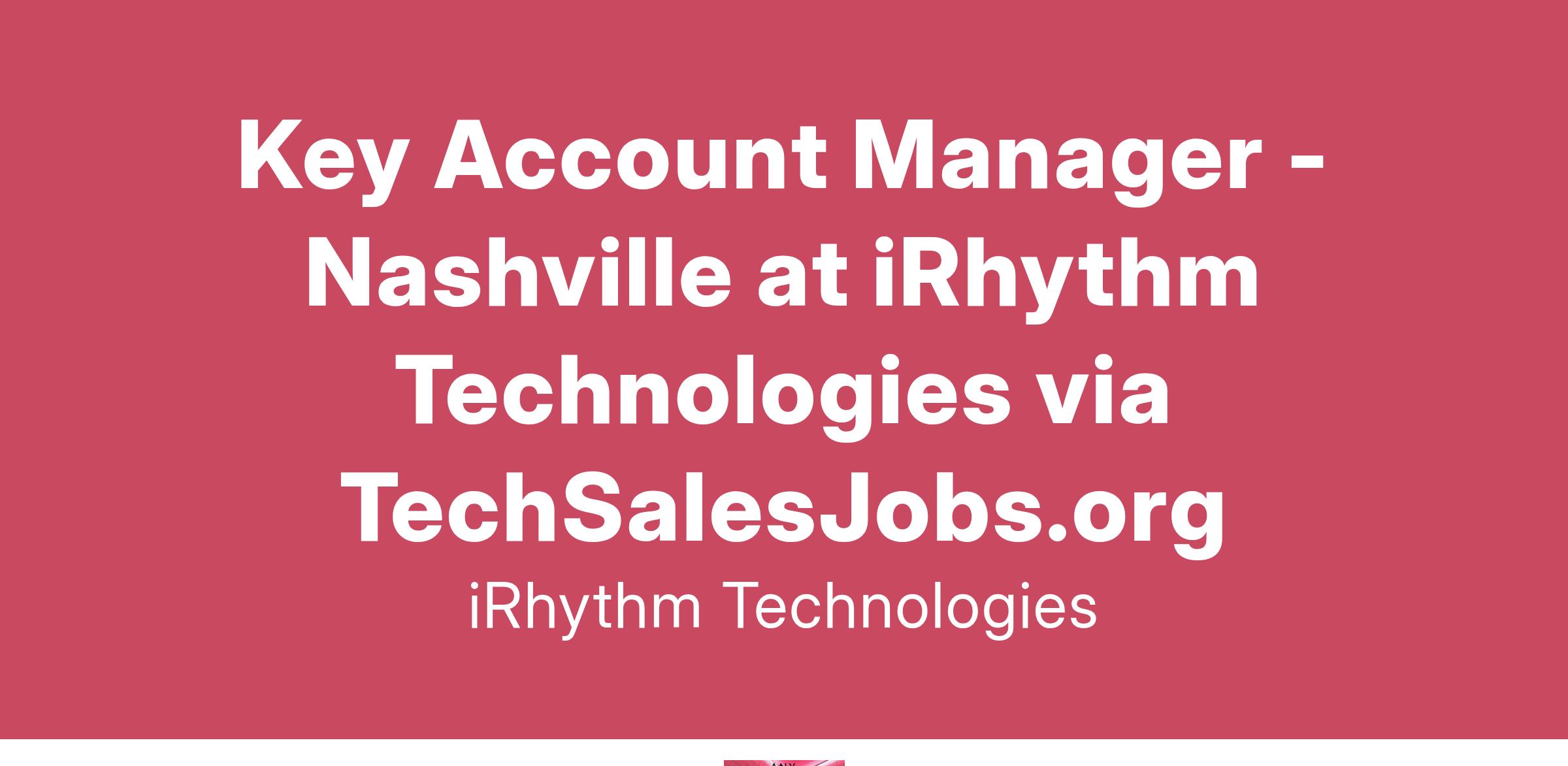 We are looking for a Key Account Manager for our Nashville area.In this role, you will be responsible for providing superior support to grow, nurture, and maintain iRhythm’s highest-volume accounts. In this role, you will cultivate and sustain long-term customer relationships, while meeting and exceeding KPIs. Proactively delivering value services to support customers and advocating internally for the solutions required to drive business outcomes are key to what you will do as a KAM. You will collaborate with iRhythm’s Marketing, Customer Care, and Clinical Operations teams. As a Key Account Manager, you will be the customers' primary escalation and intervention point of contact.