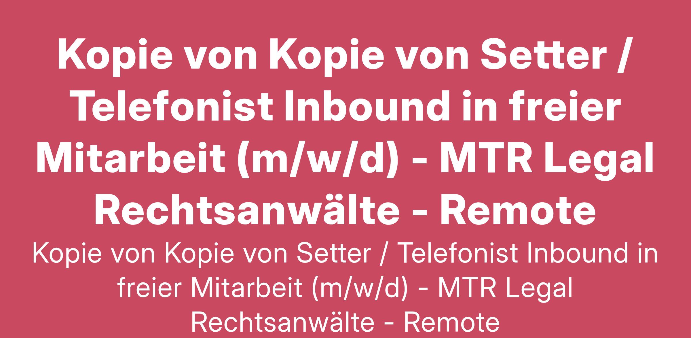 Trete unserem dynamischen Team bei MTR Legal bei und gestalte deine Karriere in einer Rechtsanwaltskanzlei, die Innovation und Fachkompetenz vereint. Hier findest du die ideale Umgebung, um dein Talent zu entfalten und dich kontinuierlich weiterzuentwickeln.