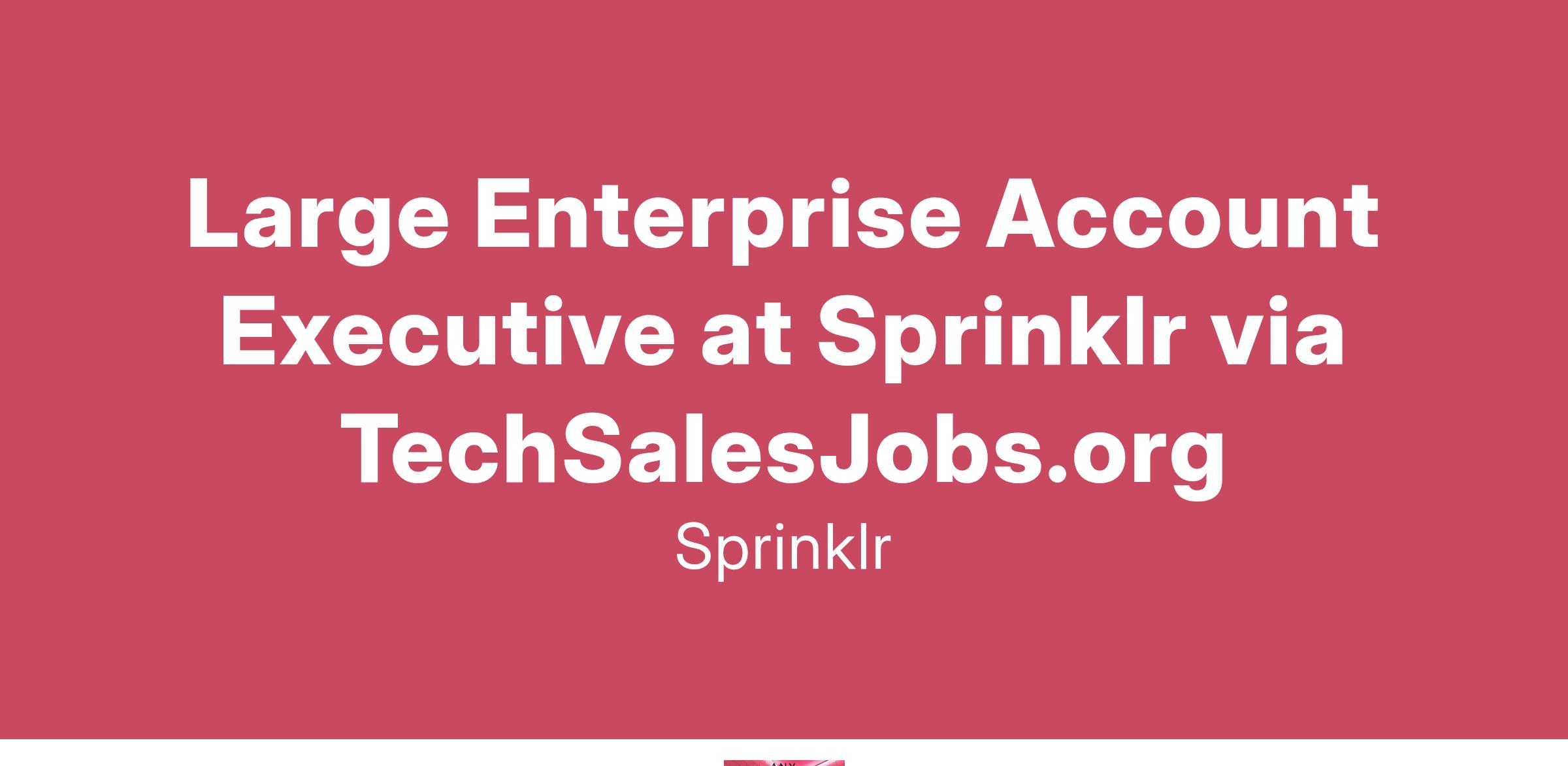 Through the interview process we will determine where the best fit would be for you! Please see the job description below to see what we typically look for when hiring for our Large Enterprise team. We look forward to connecting with you and thank you for your interest in a position at Sprinklr!