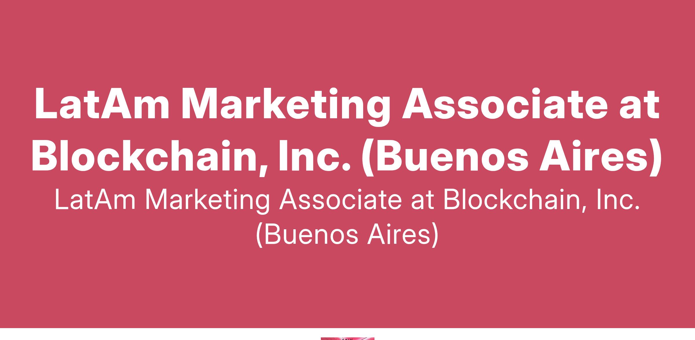 LatAm Marketing Associate at Blockchain, Inc. (Buenos Aires)