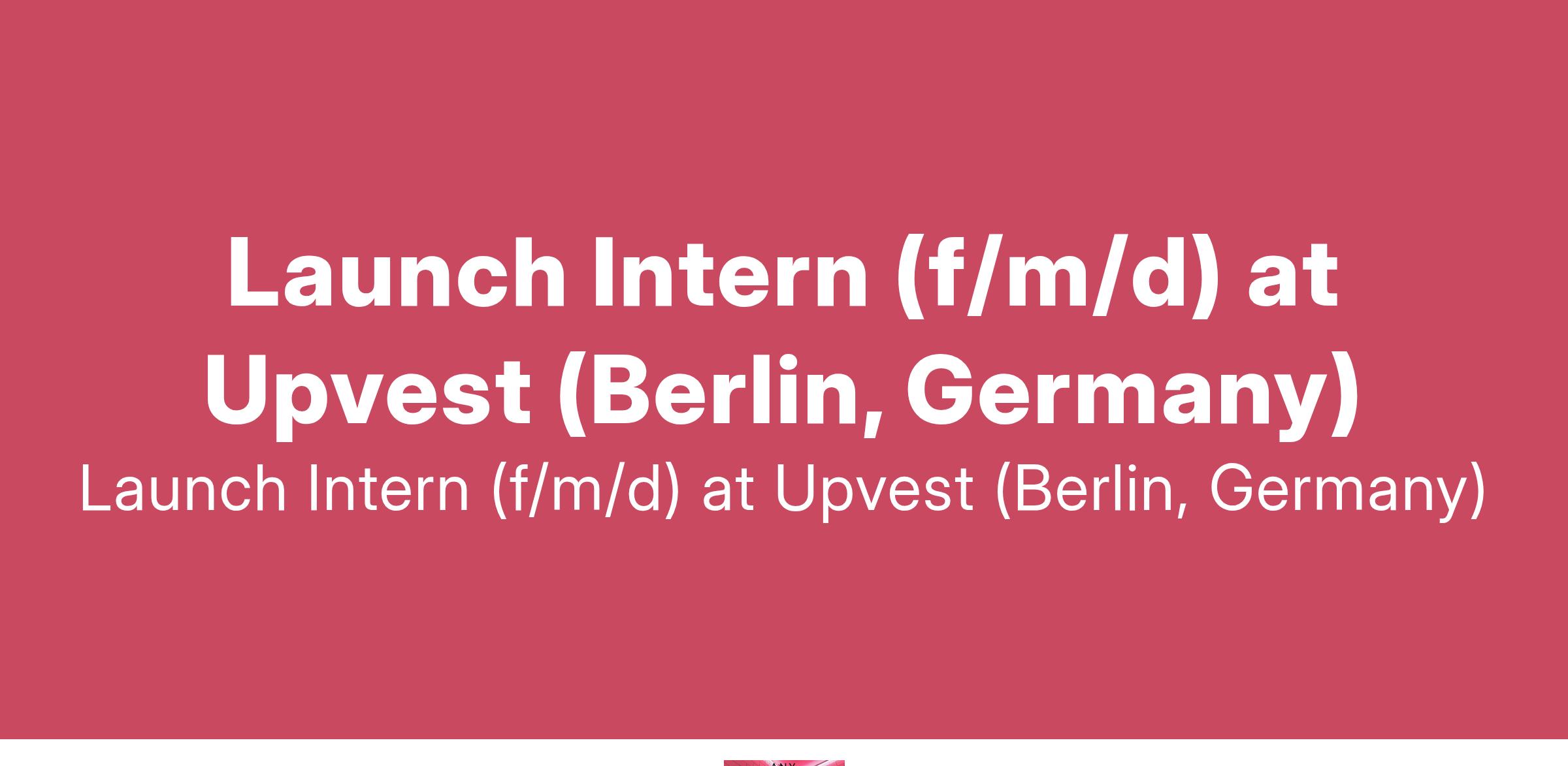 Launch Intern (f/m/d) at Upvest (Berlin, Germany)