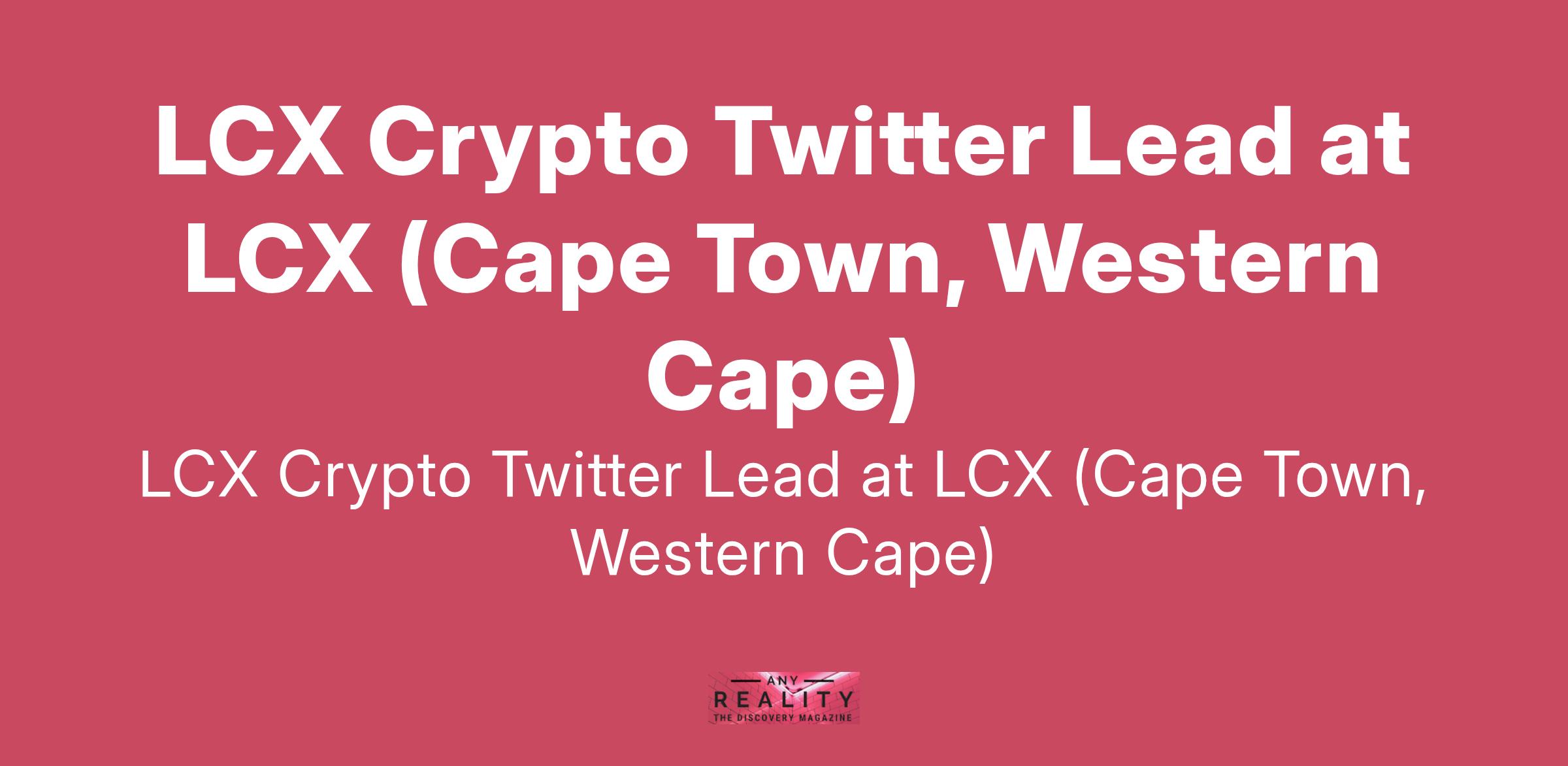 LCX Crypto Twitter LeadRemote - South AfricaJoin LCX as our Crypto Twitter Lead and play a key role in shaping and driving our presence on one of the...