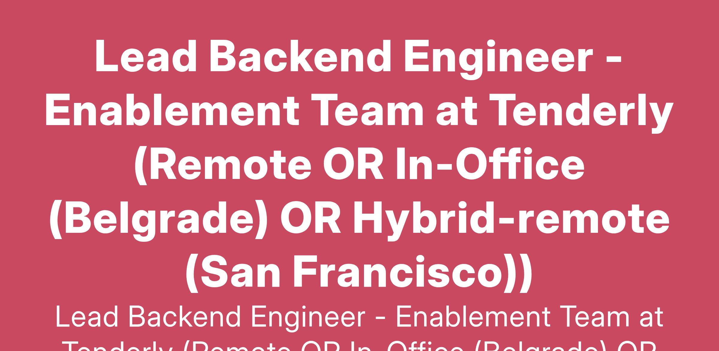 Lead Backend Engineer - Enablement Team at Tenderly (Remote OR In-Office (Belgrade) OR Hybrid-remote (San Francisco))