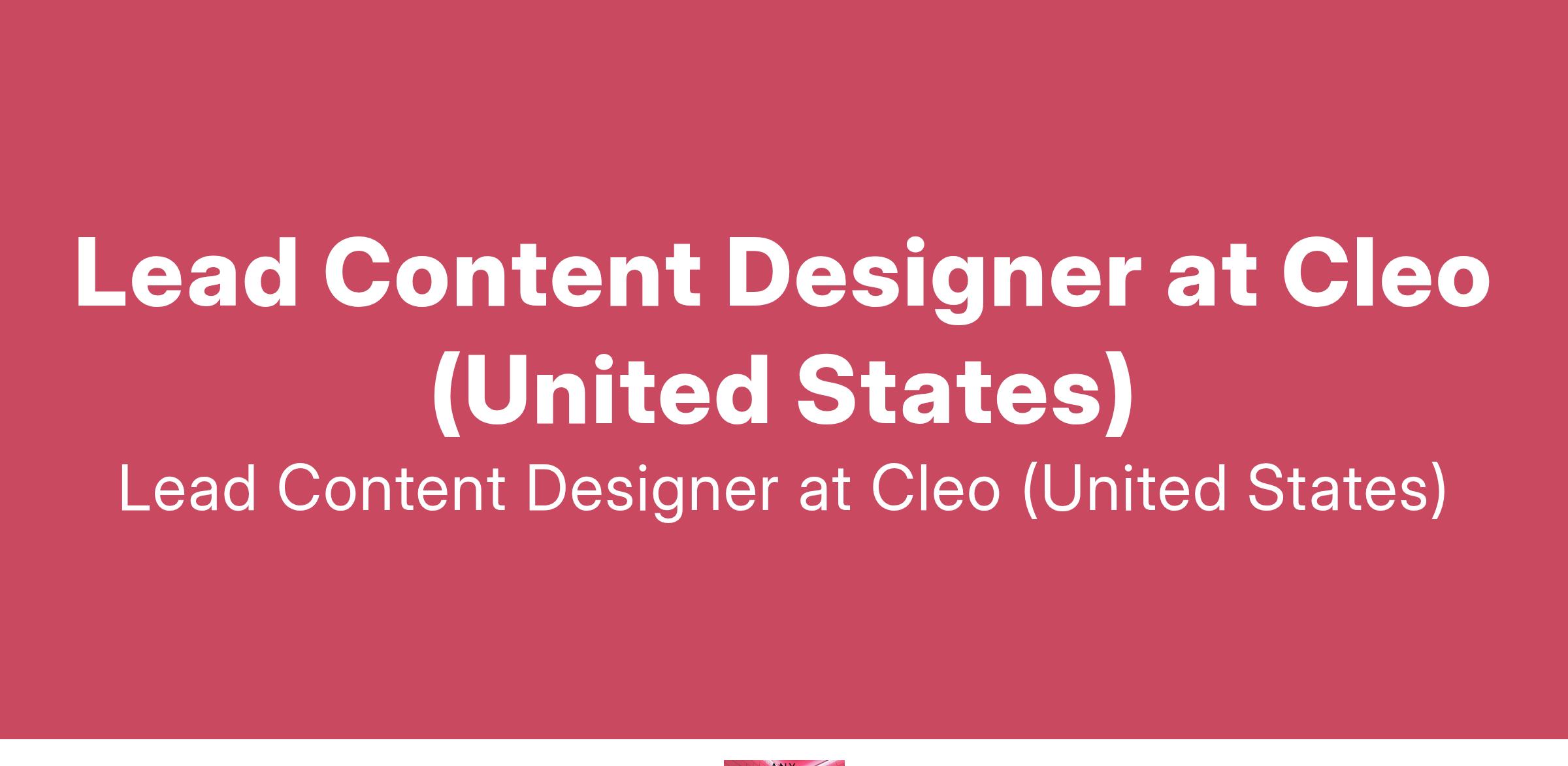 Lead Content Designer at Cleo (United States)