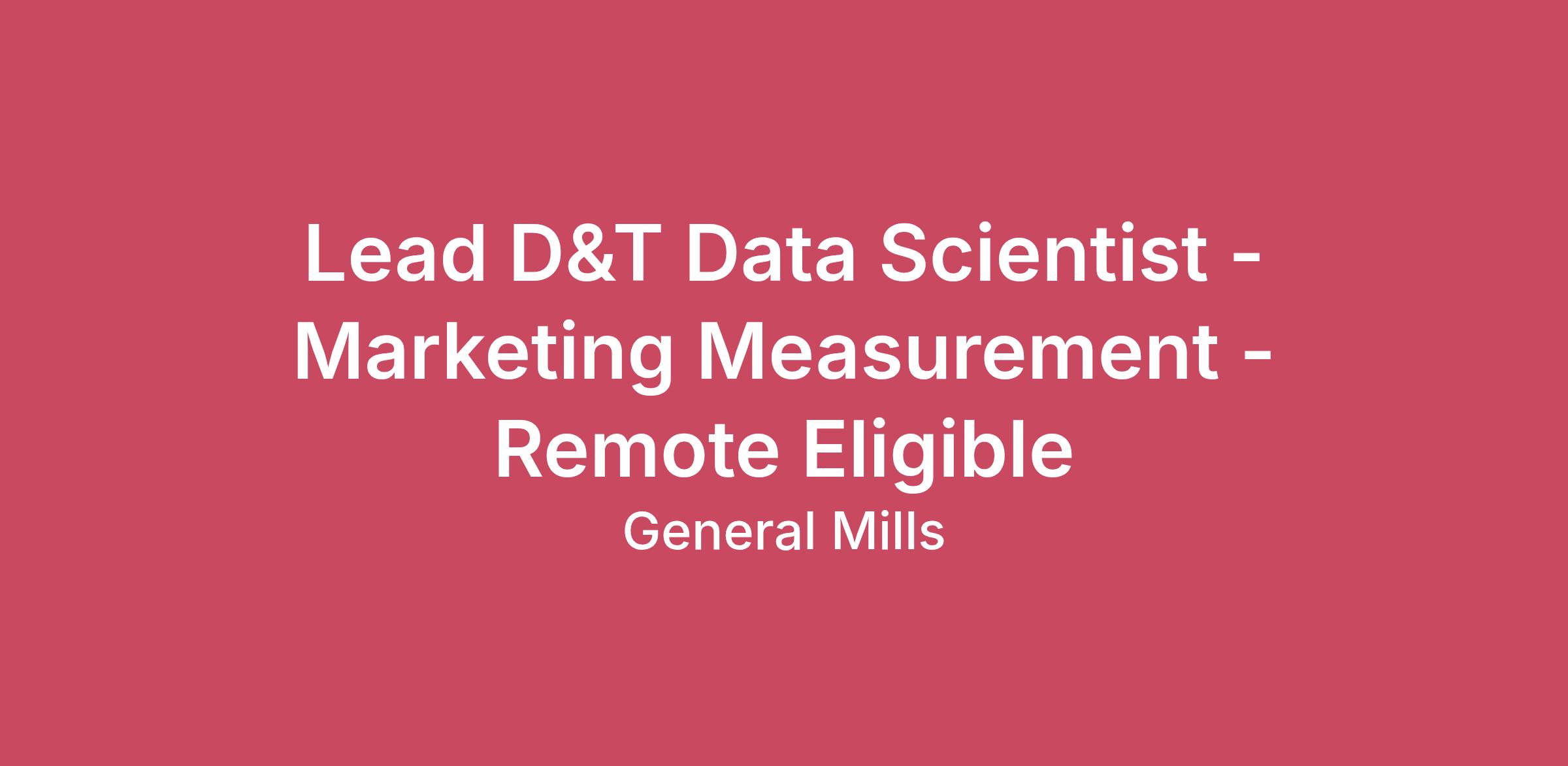 OVERVIEW:Do you see patterns or opportunities that others don’t see? Do you enjoy asking questions and analyzing data to deepen your knowledge? Do you like to challenge historical assumptions and recommend new ways to drive action based on data-driven insights? Do you like to find the best way to tackle a problem and share the approach with others? To make the food people love, we need to make sure we feed our decision makers the right data and solutions at the right time, every time. As a Lead Data Scientist at General Mills, you will apply your strong expertise in Statistics, Mathematics, Data Science, AI, Machine Learning, data mining, and information retrieval to design, prototype, and build next-generation advanced analytics engines and services. You will collaborate with product owners, business partners, and other Data Scientists in the consumer marketing and media space to define a technical problem statement and hypothesis to test. In addition, you will develop efficient and accurate analytical models that drive impact and mimic business decisions. KEY ACCOUNTABILITIESWork closely with data science leadership, machine learning engineering, and business partners/product owners to develop optimization and machine learning models using best-in-class tools and technology. Provide data science leadership within a product team through strong partnership, actionable insights, strategic and tactical technical roadmap recommendations. Develop, validate, and maintain robust causal measurement strategies to quantify the effectiveness of various marketing channels, including Marketing Mix Models (MMM), Difference in Differences, Regression Discontinuity, and causal ML.Conduct in-depth statistical and econometric analysis to measure marketing effectiveness, forecast the impact of future marketing activities, and recommend optimal budget allocation strategies.Translate complex model insights and findings into clear, actionable recommendations for campaign planning, budget allocation, and marketing strategy to diverse stakeholders, including marketing, finance, and senior leadership.Design, recommend, and execute statistically-proven A/B Testing (“Test & Measurement”) for Marketing campaigns.Counsel and advise business partners on technical solutions Serve as a senior leader as part of the data science leadership team- contribute to technical strategy, best practices, and team development.Coach junior data scientists on key technical and domain topics through solution reviews and mentoring.Responsible for monitoring and improving model performance metrics in terms of accuracy, optimal / near-optimal recommendations, with feedback incorporated from business partnersBe a part of the team, collaborate, ask questions, engage, and solicit feedback from other Data ScientistsIn addition to project-based work, you will be expected to participate in activities such as strategic planning and technical standards definition, modeling, and documentation MINIMUM QUALIFICATIONS6+ years of professional experience working as a hands-on coding Data Scientist with 4+ years of professional experience working as a hands-on coding Data Scientist building Marketing Mix Models (MMM) and Marketing Attribution ModelsBachelor’s Degree in Mathematics, Statistics, Data Science, Operations Research, Econometrics, or related quantitative discipline requiredExpert-level programming in Python and SQLExpertise in causal modeling principles (DAG design, assumptions of key designs, falsification), regression modeling (panel, time series, ridge), Bayesian modeling (e.g., PyMC), marketing mix model frameworks (PyMC, Meridian, Robyn), Ensemble (Gradient Boosting, XGBoost) Comfortable working with large datasets & writing complex SQL queriesProven track record of partnership with marketing and business leaders, influencing key marketing decisions. Highly adaptable, curious, and willing to work independently on complex and challenging problemsBias for action with the ability to deliver outstanding results through task prioritization and time managementExperience with cloud-based AI platforms PREFERRED QUALIFICATIONS Graduate degree in Statistics, Mathematics, Operations Research, Applied Economics, or related quantitative discipline. Professional Data Science experience at a Marketing Analytics agency or Consulting company.ADDITIONAL CONSIDERATIONSThe preferred location for this role is Minneapolis, MN; however remote work-at-home applications within the United States will be considered.Relocation or international remote working arrangements (outside of the US) will not be considered. Salary Range The salary range for this position is $126700.00 - $211200.00 / Annually. At General Mills we strive for each employee's pay at any point in their career to reflect their experiences performance and skills for their current role. The salary range for this role represents the numerous factors considered in the hiring decisions including, but not limited to, educations, skills, work experience, certifications, etc. As such, pay for the successful candidate(s) could fall anywhere within the stated range. Beyond base salary, General Mills offers a competitive Total Rewards package focusing on your overall well-being. We are proud to offer a foundation of health benefits, retirement and financial wellbeing, time off programs, wellbeing support and perks. Benefits may vary by role, country, region, union status, and other employment status factors. You may also be eligible to participate in an annual incentive program. An incentive award, if any, depends on various factors, including, individual and organizational performance. Reasonable Accommodation RequestIf you need to request an accommodation during the application or hiring process, please fill out our online accommodations request form by following this link: Accommodations Request.