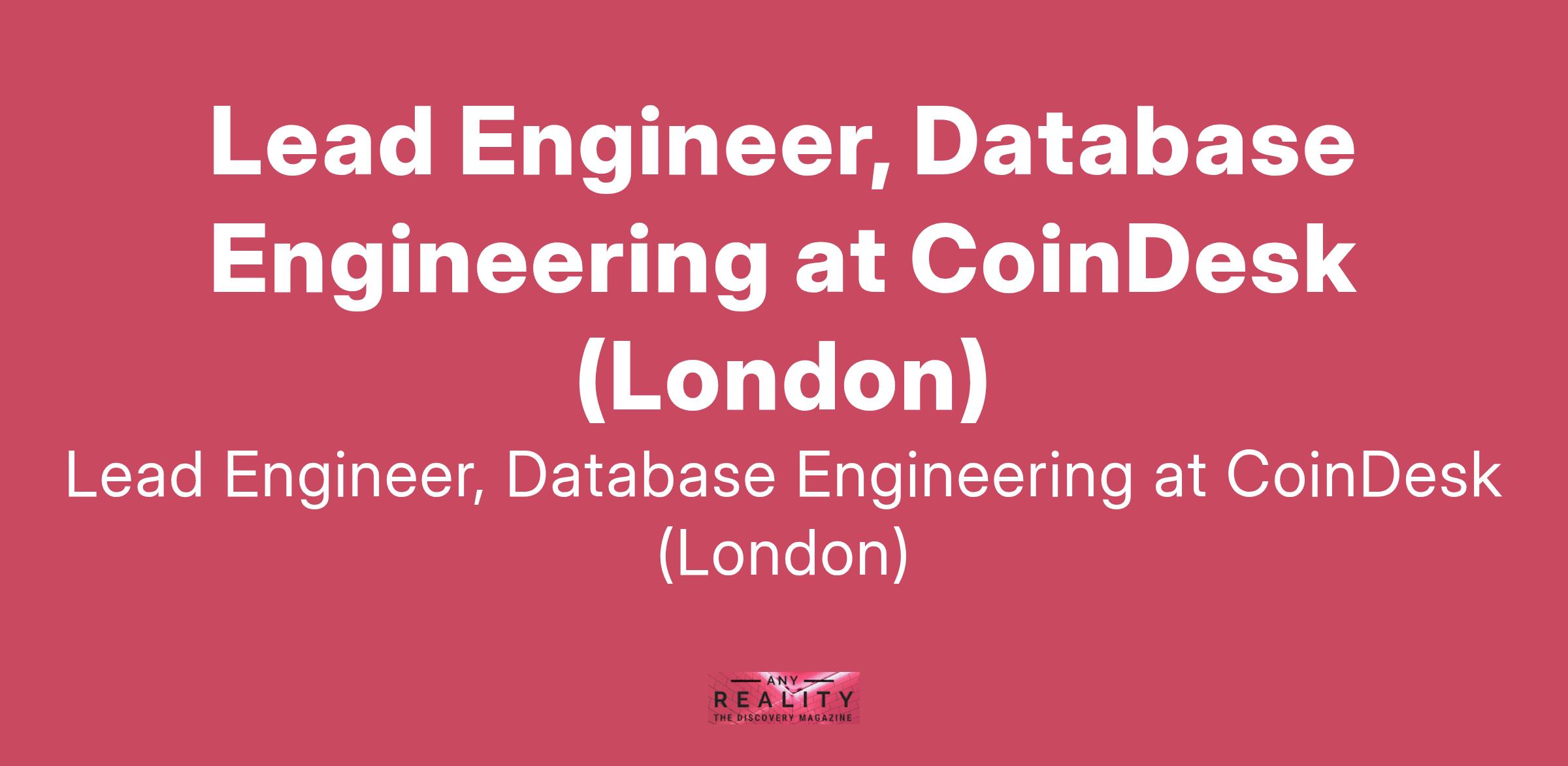Lead Engineer, Database Engineering at CoinDesk (London)