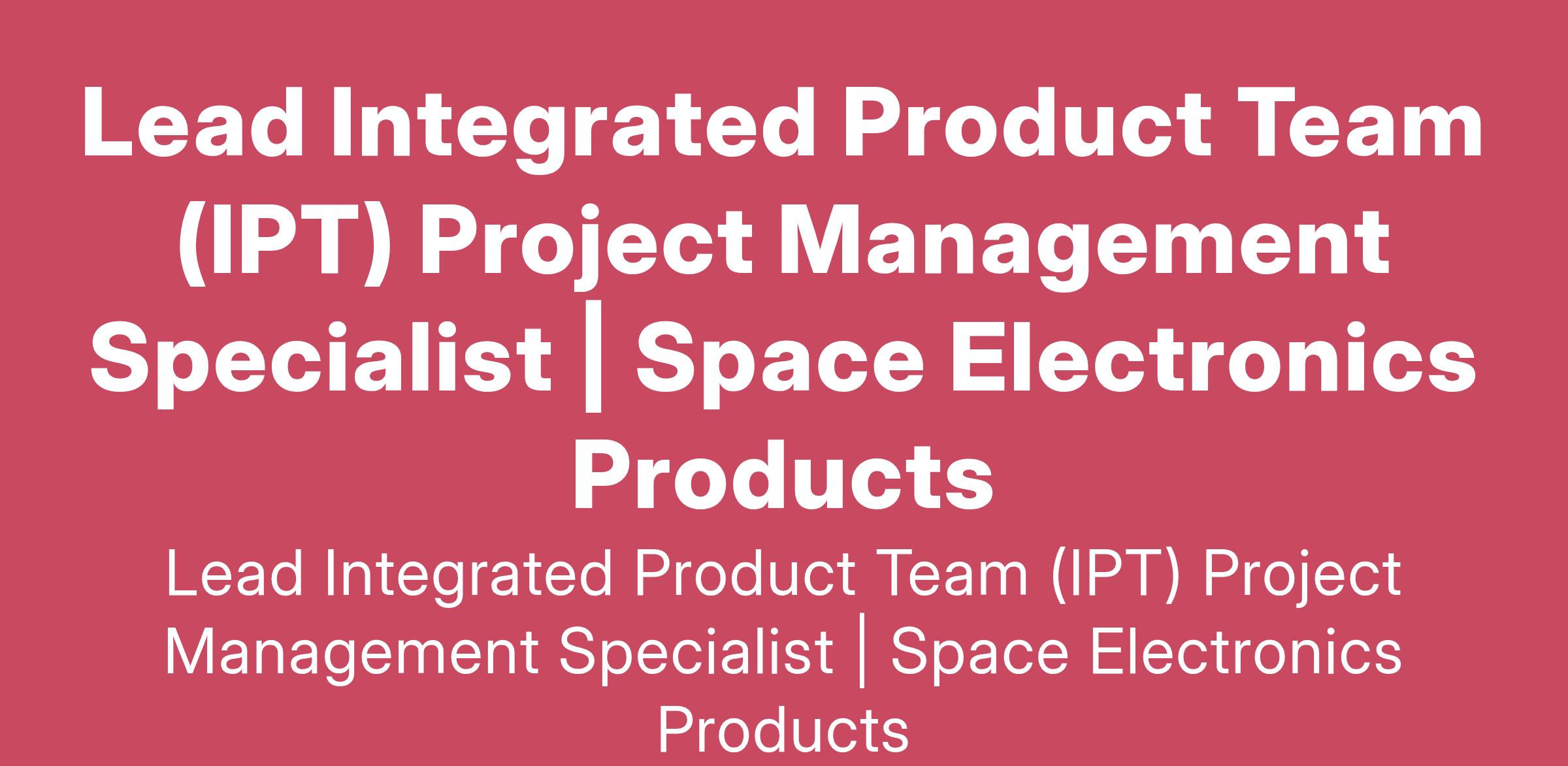 Lead Integrated Product Team (IPT) Project Management Specialist | Space Electronics Products