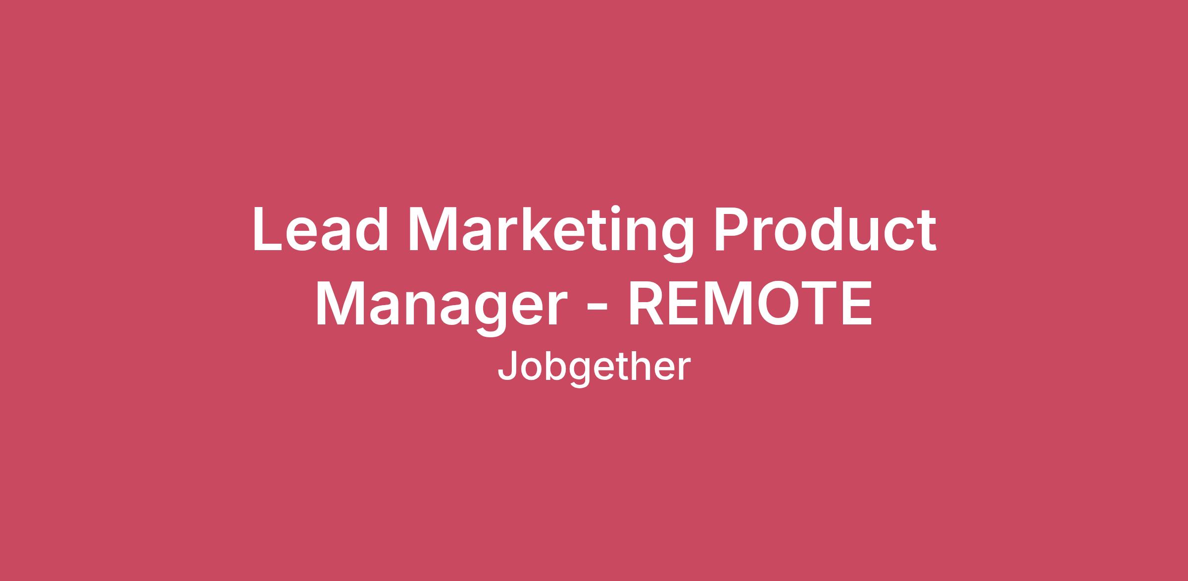 Lead Marketing Product Manager - REMOTE