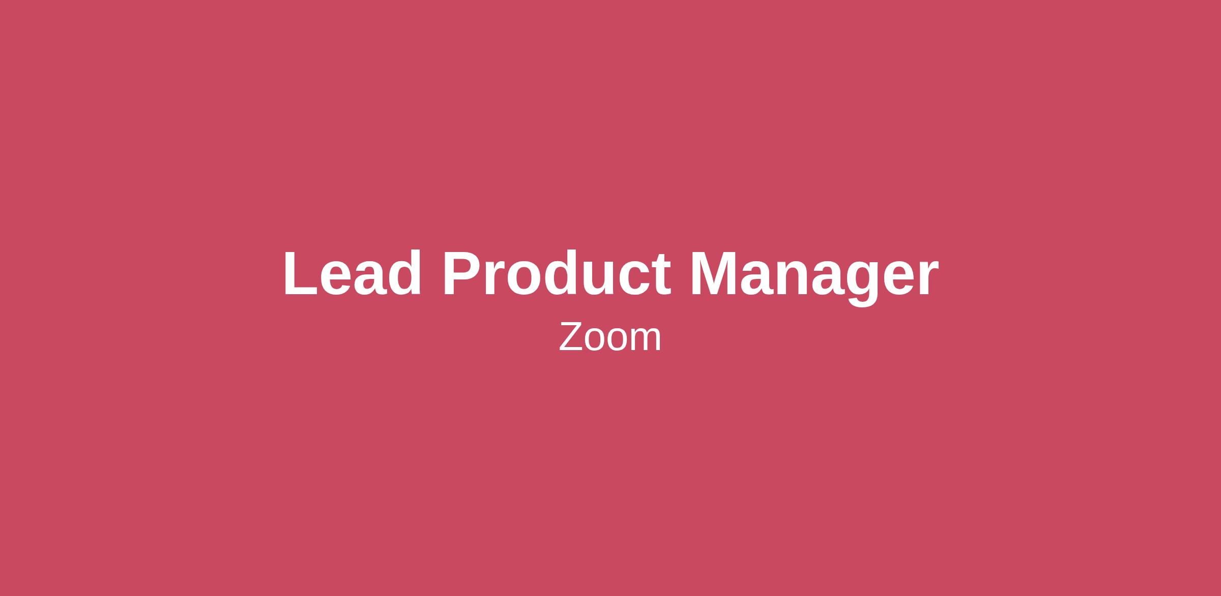 What you can expectZoom is seeking an experienced Lead Product Manager to drive the strategy and execution of our AI-native Zoom Calendar product. This role is central to shaping how time, meetings, and work orchestration happen across the Zoom platform. You will own the product vision and roadmap, lead features from concept to launch, and use customer and market insights to deliver high-impact calendar experiences. You will collaborate closely with cross-functional partners, customers, and ecosystem partners to ensure solutions are successfully built, launched, and adopted.About the TeamZoom Calendar is a key part of Zoom’s productivity and collaboration suite. It serves as the system of record for time, meetings, and scheduling across the platform. As Lead Product Manager, you will drive innovation in how users plan, prepare for, and follow up on meetings. You will connect calendar workflows seamlessly with Zoom Meetings, Scheduler, Tasks, Mail, and AI Companion. With AI Companion at the core, the team transforms calendars from passive schedules into intelligent, proactive assistants. These assistants help users stay aligned, prepared, and productive throughout the day.ResponsibilitiesDefining and execute the product vision, strategy, and roadmap for Zoom Calendar, with AI-driven experiences at the coreLeading cross-functional teams (engineering, design, research, data, marketing) to deliver high-quality, customer-focused product releasesGathering and synthesize customer feedback, usage data, market research, and industry intelligence to inform product decisionsDeveloping clear, detailed product requirements and partner closely with engineering and design through executionDriving adoption, engagement, and retention through data-driven prioritization and experimentationCollaborating with marketing, sales, and customer success teams to ensure successful launches and clear product positioningWhat we’re looking forHold a Bachelor’s degree in Computer Science, Engineering, or related field and experience working in agile development environmentsHave 7+ years in product management, including 3+ leading calendar, scheduling, or collaboration products; proven in launching and scaling B2B SaaS used daily by professionalsHave proven experience with calendar standards (CalDAV, iCal, Exchange, Google Calendar), API integrations, and enterprise platforms; AI- or automation-driven experience a nice to haveHave solid knowledge of scheduling and collaboration, including meeting workflows, time-management challenges, and the enterprise productivity ecosystemHave ability to use data to drive product strategy and decisionsBe excellent at aligning cross-functional teams, influencing stakeholders, and presenting to senior leadershipSalary Range or On Target Earnings:Minimum:$124,000.00Maximum:$271,200.00In addition to the base salary and/or OTE listed Zoom has a Total Direct Compensation philosophy that takes into consideration; base salary, bonus and equity value.Note: Starting pay will be based on a number of factors and commensurate with qualifications & experience.We also have a location based compensation structure; there may be a different range for candidates in this and other locationsAt Zoom, we offer a window of at least 5 days for you to apply because we believe in giving you every opportunity. Below is the potential closing date, just in case you want to mark it on your calendar. We look forward to receiving your application!Anticipated Position Close Date:01/29/26Ways of WorkingOur structured hybrid approach is centered around our offices and remote work environments. The work style of each role, Hybrid, Remote, or In-Person is indicated in the job description/posting.BenefitsAs part of our award-winning workplace culture and commitment to delivering happiness, our benefits program offers a variety of perks, benefits, and options to help employees maintain their physical, mental, emotional, and financial health; support work-life balance; and contribute to their community in meaningful ways. Click Learn for more information.About UsZoomies help people stay connected so they can get more done together. We set out to build the best collaboration platform for the enterprise, and today help people communicate better with products like Zoom Contact Center, Zoom Phone, Zoom Events, Zoom Apps, Zoom Rooms, and Zoom Webinars.We’re problem-solvers, working at a fast pace to design solutions with our customers and users in mind. Find room to grow with opportunities to stretch your skills and advance your career in a collaborative, growth-focused environment.Our CommitmentAt Zoom, we believe great work happens when people feel supported and empowered. We’re committed to fair hiring practices that ensure every candidate is evaluated based on skills, experience, and potential. If you require an accommodation during the hiring process, let us know—we’re here to support you at every step.If you need assistance navigating the interview process due to a medical disability, please submit an Accommodations Request Form and someone from our team will reach out soon. This form is solely for applicants who require an accommodation due to a qualifying medical disability. Non-accommodation-related requests, such as application follow-ups or technical issues, will not be addressed.