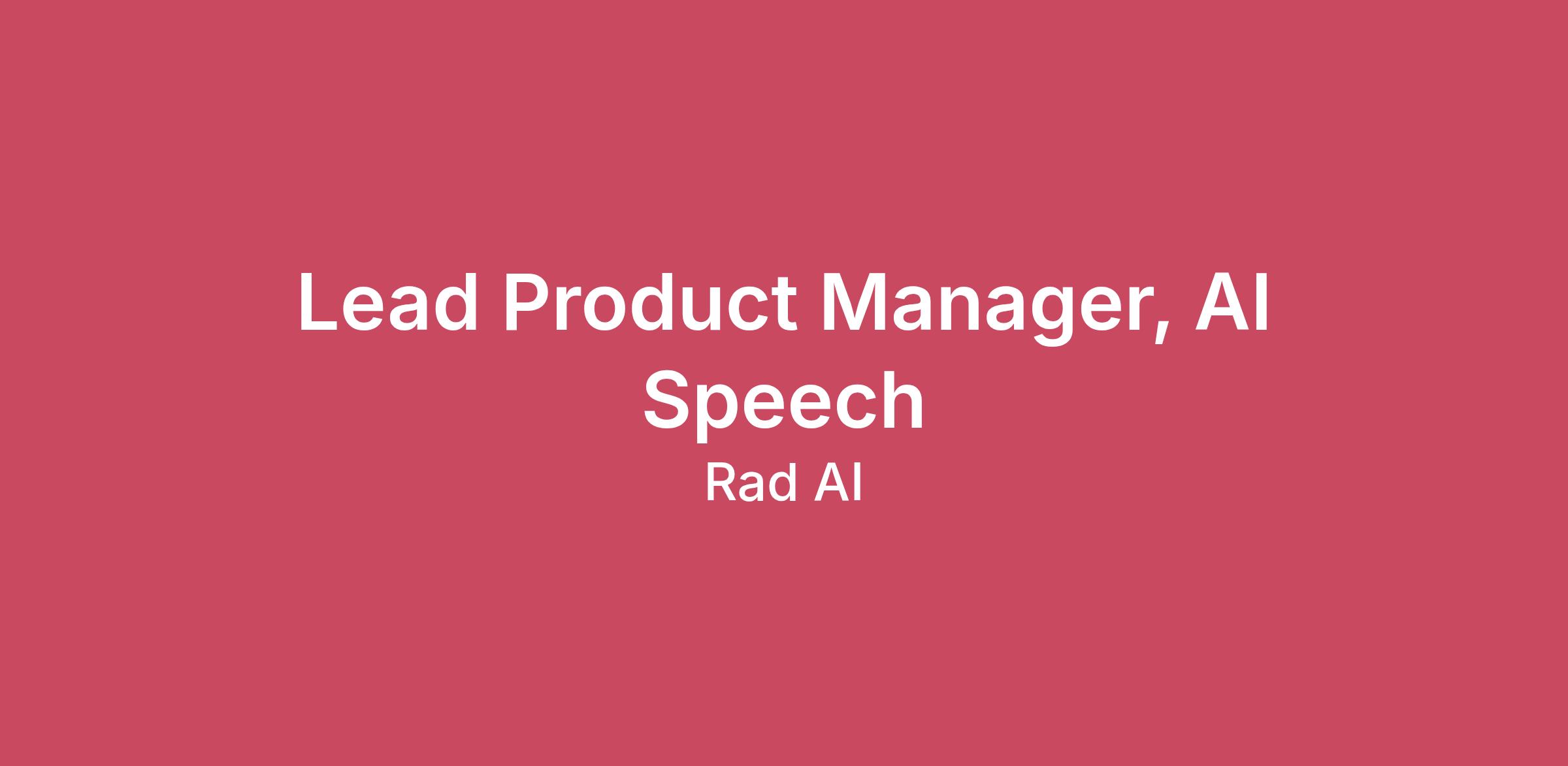 About Rad AIAt Rad AI, we’re on a mission to transform healthcare with artificial intelligence. Founded by a radiologist, our AI-driven solutions are revolutionizing radiology—saving time, reducing burnout, and improving patient care. With one of the largest proprietary radiology report datasets in the world, our AI has helped uncover hundreds of new cancer diagnoses and reduced error rates in tens of millions of radiology reports by nearly 50%.Rad AI has secured over $140M in funding, including a recently oversubscribed Series C ($68M round) led by Transformation Capital, bringing our valuation to $528M. Our investors include Khosla Ventures, World Innovation Lab, Gradient Ventures, Cone Health Ventures, and others—all backing our mission to empower physicians with cutting-edge AI.Our latest advancements in generative AI are used by thousands of radiologists daily, supporting more than one-third of radiology groups and healthcare systems and nearly 50% of all medical imaging in the U.S. at partners including Cone Health, Jefferson Einstein Health, Geisinger, Guthrie Healthcare System, and Henry Ford Health.Recognized as one of the most promising healthcare AI companies by CB Insights and AuntMinnie, and ranked by Deloitte as the 19th fastest-growing company in North America, we are building AI-powered solutions that make a real impact. Most recently, Rad AI was named to CNBC’s Disruptor 50 list, highlighting the innovation and momentum behind our mission.If you’re ready to shape the future of healthcare, we’d love to have you on our team!Why Join Us:As a Lead Product Manager for AI Speech, you will define, steer, and execute the strategy, development, and launch of Rad AI’s most advanced, AI-driven Speech features. Your team will use proprietary datasets, deep learning models, and generative AI systems to drive measurable improvements in radiologist productivity and patient outcomes.You’ll work closely with machine learning engineers, data scientists, product managers, designers, and clinical experts to define, ship, and scale AI-powered speech experiences that reach thousands of clinicians daily. This is a high-impact role where product strategy meets deep technical understanding of AI systems, user trust, and real-world clinical deployment at scale.What You’ll Be Doing:Own the product roadmap for AI-driven speech features and experiences, from ideation through launch and iteration.Collaborate with ML and data science teams to translate model capabilities into intuitive, high-value user workflows.Drive end-to-end productization of AI Speech-to-Text, including model evaluation, performance monitoring, safety, and explainability frameworks for clinical environments.Partner with engineering and design to create human-centric user experiences that build trust in AI speech outputs and integrate seamlessly into radiology workflows.Define and track key success metrics, including accuracy, latency, adoption, and user satisfaction.Work with customers and radiologists directly to understand clinical pain points and validate product hypotheses.Contribute to company-wide AI strategy, helping shape how Rad AI leverages large-scale data and generative AI models across our product lines.Collaborate cross-functionally with regulatory, privacy, and security teams to ensure AI systems meet healthcare compliance and safety standards.Who You Are:Bachelor’s degree in Computer Science, Engineering, Data Science, or a related technical field.7+ years of product management experience, including 2+ years leading AI/ML or data-driven products in production environments.Proven success building and launching AI-powered features at scale, ideally within enterprise SaaS or healthcare technology.Strong understanding of machine learning lifecycles, model evaluation, and human-in-the-loop systems.Exceptional communicator who can translate complex AI concepts into clear product strategy, technical requirements, and compelling user value for both technical and business audiences.Highly collaborative and comfortable working with ML, data, and engineering teams as well as clinicians and business stakeholders.Customer-obsessed and driven by solving real clinical problems and improving human performance through intelligent systems.Thrives in a fast-paced, high-growth environment with evolving priorities.It’s a Plus If You Also Have:Experience deploying AI or ML solutions in healthcare or other regulated domains.Understanding of generative AI models and their application to real-world workflows.Previous product ownership across multi-tenant or enterprise-scale platforms.Join our world-class team as we build and deploy AI solutions that empower physicians and transform patient care—making a meaningful impact on millions of lives. Driven by our mission, we prioritize transparency, inclusion, and close collaboration, bringing together exceptional people to revolutionize healthcare. If you're passionate about driving innovation and delivering impactful healthcare solutions, we'd love to hear from you!To learn more about what it's like to work at Rad AI, visit https://www.radai.com/life-at-rad-aiFor US-Based Full-Time Roles, Rad AI offers a variety of benefits, including:Comprehensive Medical, Dental, Vision & Life insuranceHSA (with employer match), FSA, & DCFSA 401(k)11 Paid Company HolidaysLocation Flexibility (Remote-first company!)Flexible PTO policyAnnual company-wide offsitePeriodic team offsitesAnnual equipment stipendFor roles based outside the US, your recruiter can share more detailsAt Rad AI, we value diversity and provide equal employment opportunities (EEO) to all employees and applicants without regard to race, color, religion, national origin, gender, sexual orientation, age, marital status, veteran status, or disability status. We will consider for employment qualified applicants with criminal histories in a manner consistent with the requirements of the San Francisco Fair Chance Ordinance