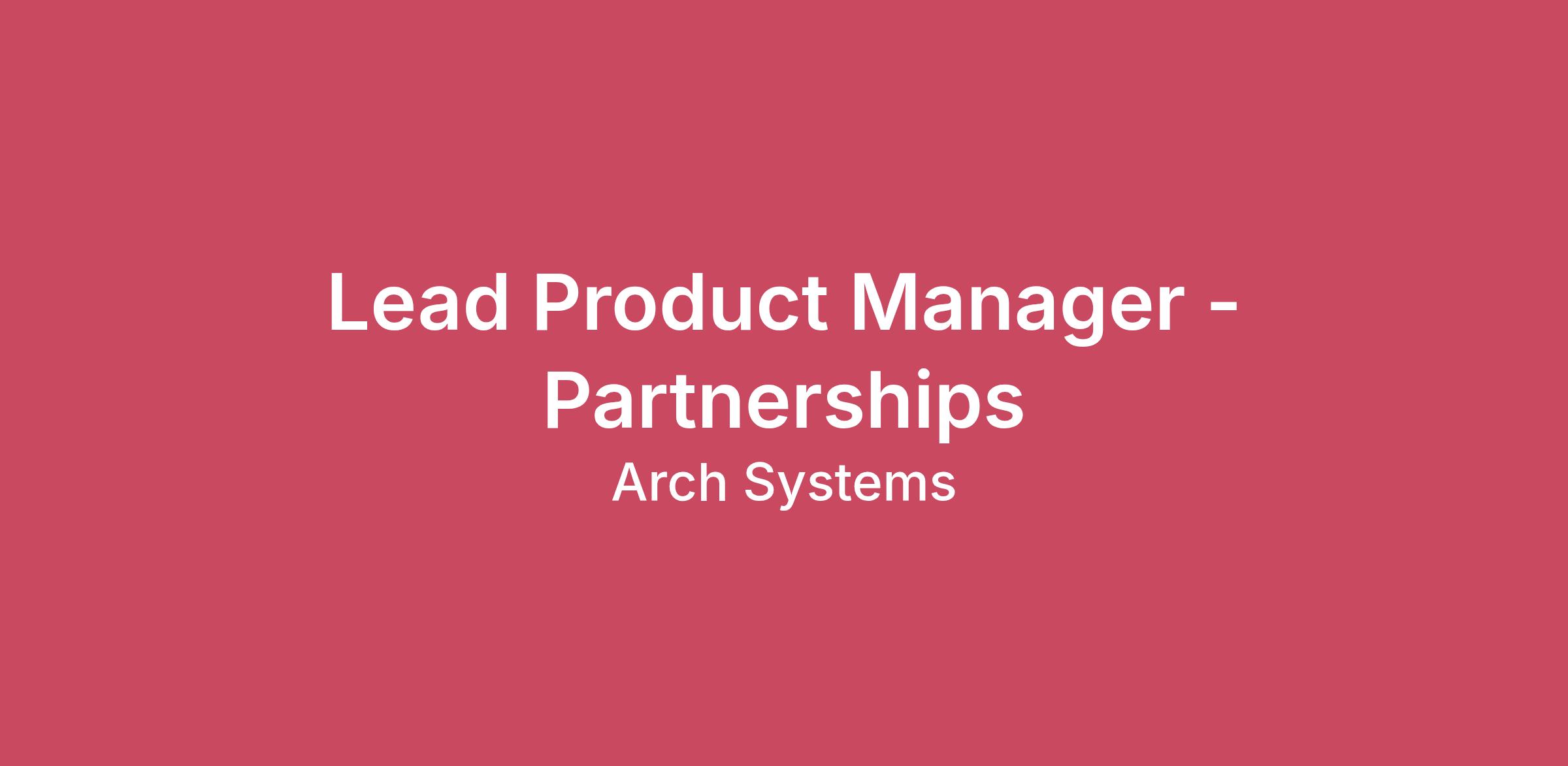 About the Role Arch Systems is seeking a Lead Product Manager for Partnerships to own the product strategy and execution that makes Arch a best-in-class partner to machine distributors and other channel partners. Your primary objective is to ensure partners see Arch as a product that prioritizes their success through high-quality integrations, partner-specific capabilities, and clear packaging that helps them differentiate their offerings and confidently discuss Arch alongside their own products. This role is responsible for making Arch the product our partners want to lead with. You will translate company strategy into partner-focused product offerings that drive adoption, revenue, and long-term ecosystem growth. You will excel if you have: Deep product management experience delivering complex software products from strategy through execution Hands-on experience with data platforms, APIs, and large-scale analytics systems The ability to operate across strategic, operational, and technical dimensions to drive partner success What You Will Own & Drive Partner-Centric Product Leadership: Own Arch's partner-facing product strategy, treating partners as a core product user. Lead product efforts that enable partners to succeed with their customers through clear value, usability, and outcomes. Act as the product lead for strategic partner engagements, ensuring partner needs are reflected in roadmap priorities and execution. Integrations & Partner Experience: Define and prioritize deep, high-quality integrations that make Arch feel like a natural extension of partner products. Drive features and workflows that enhance partner value propositions, improve joint demos, and strengthen co-selling narratives. Ensure partner integrations are reliable, scalable, and easy to adopt. Pricing, Packaging & Partner Enablement: Own pricing and packaging strategy for partner-delivered offerings, ensuring partners can clearly position and sell Arch. Collaborate with Partnerships, Commercial, and Marketing teams to create partner-ready bundles and commercial models. Translate platform capabilities into offerings that partners can confidently take to market. Product Strategy & Roadmap Ownership: Maintain a partner-focused product roadmap, balancing bespoke partner needs with scalable platform investments. Make explicit trade-offs between short-term partner asks and long-term ecosystem leverage. Engineering Collaboration: Partner closely with Engineering to define clear, prioritized requirements that support partner use cases and integrations. Ensure teams understand the complex factory software ecosystem that partners operate within. Navigate technical constraints to set realistic partner expectations and deliver durable solutions. What You Bring to The Table Product Management Experience: 8+ years of experience in Product Management or related roles Technical Background: Bachelor's degree in Computer Science, Engineering, or a related technical discipline Platform Expertise: Hands-on experience working with data platforms, APIs, and large-scale analytics systems Execution Track Record: Demonstrated experience delivering complex software products from strategy through execution and go-to-market Customer-Centric Approach: Experience incorporating structured customer feedback into product roadmaps Leadership in Ambiguity: Ability to operate effectively in a fast-paced, ambiguous environment and lead through change What Makes You Stand Out MBA degree Experience with industrial software, MES, machine data platforms, or manufacturing ecosystems Experience working directly with OEMs, system integrators, or channel partners Familiarity with co-selling, partner-led GTM motions, or ecosystem product strategy Experience in growth-stage or scaling organizations How We Will Support You Innovate with Impact: Join a team building advanced AI and data products that meaningfully improve manufacturing operations around the world. Your work will contribute directly to efficiency, sustainability, and technical agility for major industrial players. Collaborative Environment: Work alongside a passionate, multidisciplinary team that values curiosity, open dialogue, and cross-functional collaboration. We foster an environment of continuous learning and shared success. Growth & Development Opportunities: Develop leadership and technical skills through hands-on experience with product innovation, complex customer programs, and data-driven decision-making. Arch supports your long-term career advancement and deepening of industry expertise. Equity & Ownership: Benefit from equity opportunities that align your contributions with the long-term success and mission of Arch Systems. Remote-First Flexibility: Thrive in a remote-first culture designed to enable flexibility, balance, and productivity across a globally distributed team. Application Process Please submit resumes in English. We encourage passionate applicants to apply, even if they don't meet every qualification. At Arch, we value authenticity and believe in hiring individuals as their full, unique selves. We're committed to fostering an environment where team members can leverage their strengths while continuously learning and growing. Don't let imposter syndrome hold you back. If you're excited about this opportunity, we'd love to hear from you! About Arch Systems At Arch Systems, we empower discrete manufacturing facilities with deep data insights that enable optimal efficiency, precise KPIs, and proactive decision-making. We work with leading manufacturers to integrate and optimize their data for actionable intelligence, fueling productivity and operational excellence. Compensation Practices Arch Systems is committed to equitable, transparent, and market-competitive compensation. This role is remote-first, and compensation is benchmarked using San Francisco Bay Area market data as the reference point for our pay ranges. The San Francisco Bay Area total compensation range for this