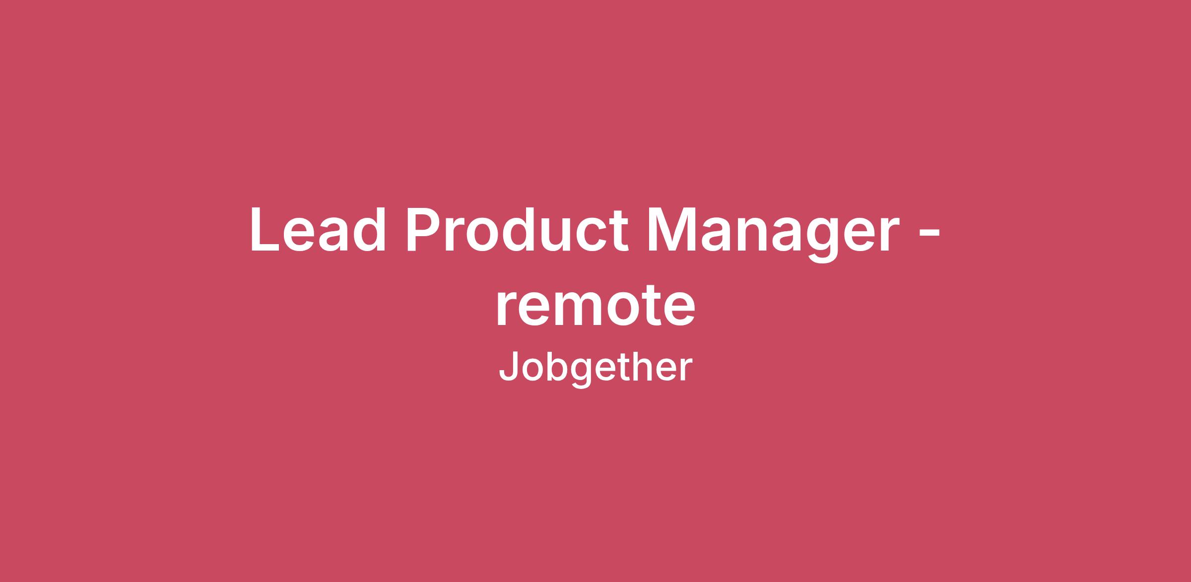 Lead Product Manager - remote