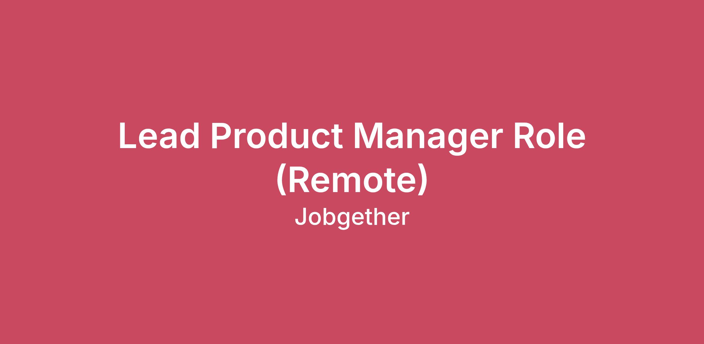 Lead Product Manager Role (Remote)