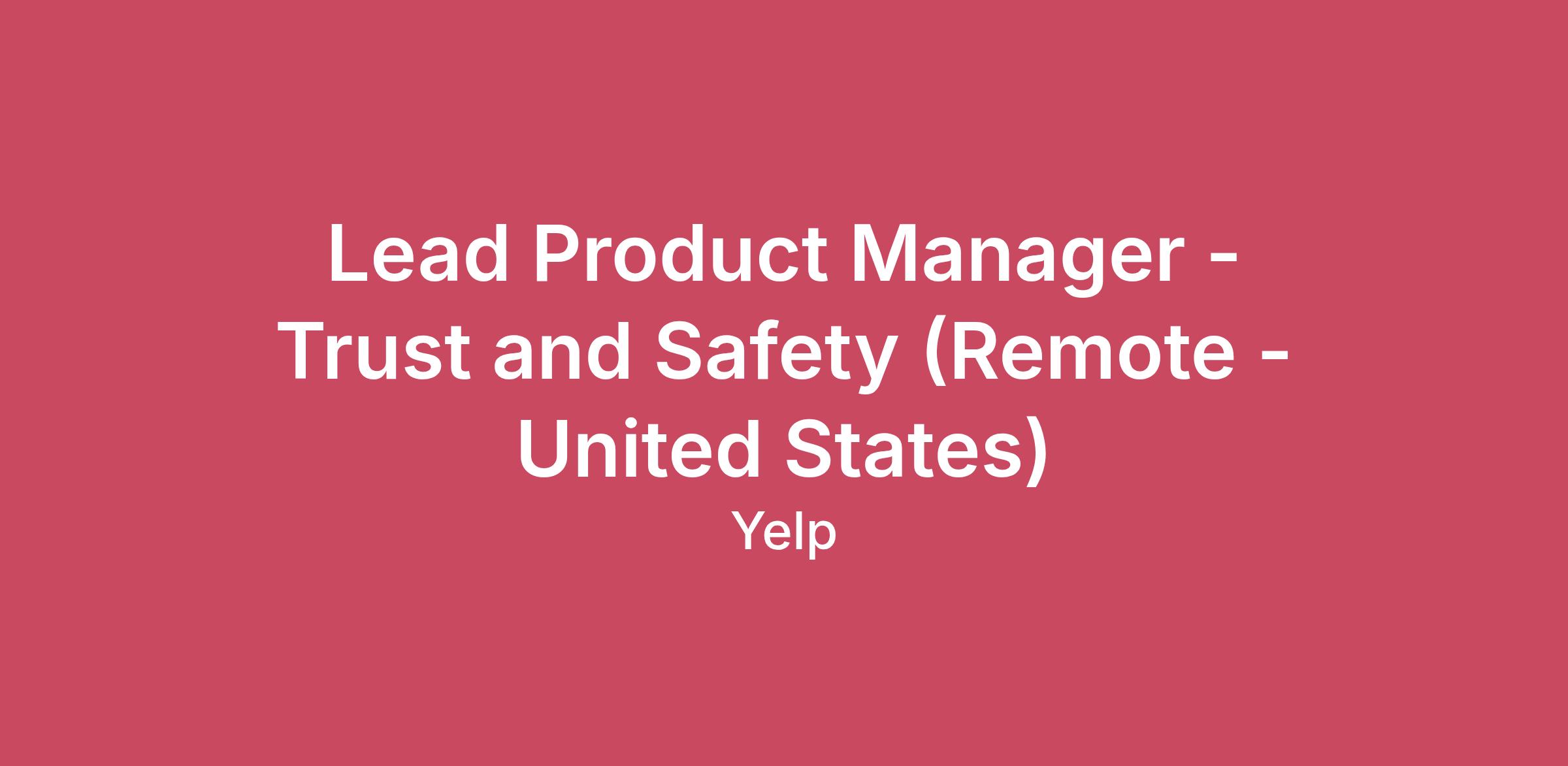 Summary Are you passionate about building AI/ML/LLM-powered systems to stop fraud at scale? Do you thrive at the intersection of technology, data, and regulation? Are you ready to lead product efforts that directly impact the trustworthiness of a platform used by millions?Yelp’s Trust & Safety team is seeking a Lead Product Manager to drive core efforts for our Review Recommendation System and global compliance initiatives. You’ll play a critical role in shaping Yelp’s defenses against fake reviews and deceptive behavior, while also serving as the product lead for our evolving global compliance efforts. You’ll work closely with engineering, data science, legal, and operations to ensure Yelp remains a trusted platform for millions of users. This is a high-impact role at the heart of Yelp’s content trust strategy. You’ll lead the roadmap for AI/ML models—including LLMs—that power Yelp’s review recommendation system, combat spam, and safeguard account authenticity. You’ll also partner closely with Legal to ensure our systems align with regulatory requirements across the U.S., EU, and other jurisdictions. Where You’ll Make an Impact Spam Detection & Recommendation System (80%)Lead the product strategy for identifying and mitigating spam and fake content using AI, ML, and LLMs.Evolve the review recommendation algorithm to stay ahead of adversarial behavior.Define and expand the account authenticity and integrity problem space to support long-term investment.Drive cross-functional alignment across engineering, operations, data science, PR, and legal to protect Yelp from manipulation and abuse.Compliance (20%)Serve as the primary product partner to Yelp’s Legal team on compliance matters.Translate emerging legislation and regulatory guidance into product strategies and scalable systems.Ensure compliance across the U.S. (federal and state), EU, UK, and Canadian regulatory frameworks.This opportunity is fully remote and does not require you to be located in any particular state within the US. We welcome applicants from throughout the US. We’d love to have you apply, even if you don’t feel you meet every single requirement in this posting. At Yelp, we’re looking for great people, not just those who simply check off all the boxes. What you'll do: Define and execute the roadmap for spam detection, review recommendation, and account integrity using AI, ML, and LLMs.Translate loosely defined or emerging abuse vectors into structured, measurable product initiatives.Partner with Legal to interpret regulatory requirements (e.g., DSA, CPRA) and build scalable compliance solutions.Lead cross-functional efforts across engineering, operations, data science, PR, and legal to drive alignment and deliver impact.Use data and experimentation to evaluate threats, measure product performance, and inform prioritization.Present clear updates and tradeoffs to executives and stakeholders to build confidence in direction and outcomes.Represent the Trust & Safety team internally and externally as a subject matter expert on platform integrity. What it takes to succeed: 5+ years of product management experience, with at least 3 years working on ML/AI-based systems; LLM experience is a plus.Demonstrated success leading product initiatives in Trust & Safety, content moderation, fraud detection, or recommendation systems.Ability to influence, build trust and align cross-functional teams across all levels of the organization through excellent communication and stakeholder management skills.Strong analytical thinking and comfortable working with data to identify root causes and measure impact.Excellent communication and stakeholder management skills, especially when working with legal, PR, and executive audiences.Passion for building trustworthy systems and protecting users from bad actors.Familiarity with global regulatory trends affecting online platforms (e.g. DSA, CPRA) is a plus.Prior experience in a consumer tech or platform company is preferred.A Bachelor’s Degree or an equivalent work experience is required. What you'll get: Compensation range is $124,000-$269,000 annually. You may also be offered restricted stock units and benefits.This opportunity has the option to be fully remote in all locations across the US.You can find more information about Yelp's five star benefits here! Closing At Yelp, we believe that diversity is an expression of all the unique characteristics that make us human: race, age, sexual orientation, gender identity, religion, disability, and education — and those are just a few. We recognize that diverse backgrounds and perspectives strengthen our teams and our product. The foundation of our diversity efforts are closely tied to our core values, which include “Playing Well With Others” and “Authenticity.” We’re proud to be an equal opportunity employer and consider qualified applicants without regard to race, color, religion, sex, national origin, ancestry, age, genetic information, sexual orientation, gender identity, marital or family status, veteran status, medical condition or disability. Actual salary offered may vary based on multiple factors, including but not limited to, an individual's location and experience. We will consider for employment qualified candidates with arrest and conviction records, consistent with applicable law (including, for example, the San Francisco Fair Chance Ordinance for roles based in San Francisco, the Los Angeles County Fair Chance Ordinance for roles based in the unincorporated areas of Los Angeles County, and the California Fair Chance Act for roles based in California). We are committed to providing reasonable accommodations for individuals with disabilities in our job application process. If you need assistance or an accommodation due to a disability, you may contact us at accommodations-recruiting@yelp.com or 415-969-8488. Note: Yelp does not accept agency resumes. Please do not forward resumes to any recruiting 