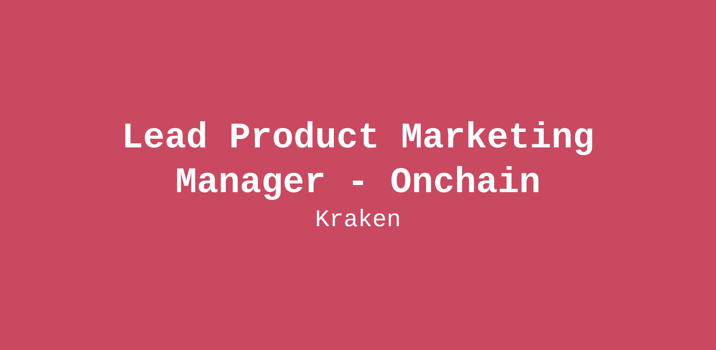 Lead Product Marketing Manager - Onchain