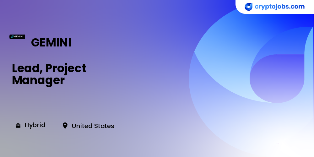 Gemini is seeking a Lead, Project Manager to stand up a project management office (PMO) framework, driving project execution and strategic alignment across Gemini. This role will initially focus on defining and rolling out Gemini’s new PMO structure—setting standards, templates, governance, tooling, and cross-functional alignment.