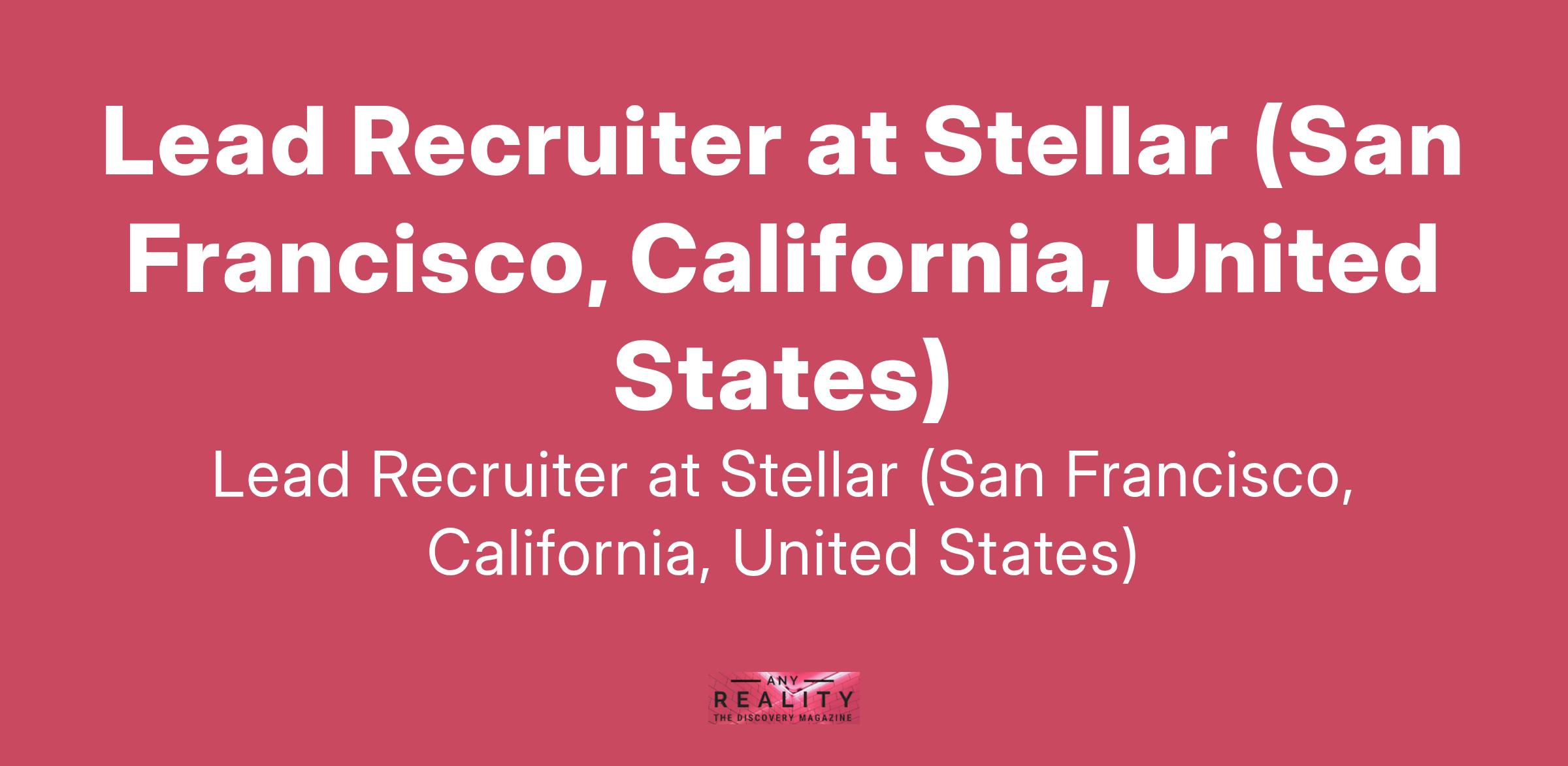 Lead Recruiter at Stellar (San Francisco, California, United States)