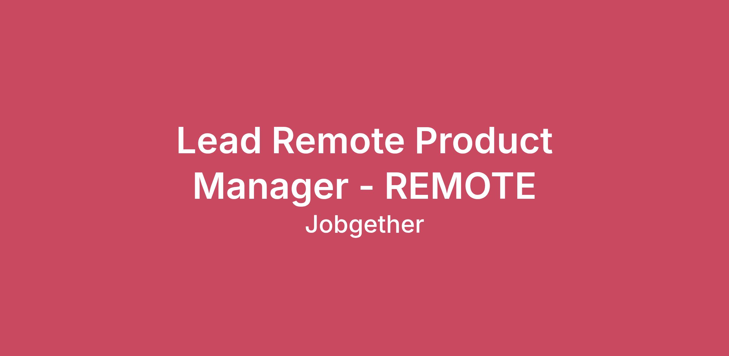 Lead Remote Product Manager - REMOTE