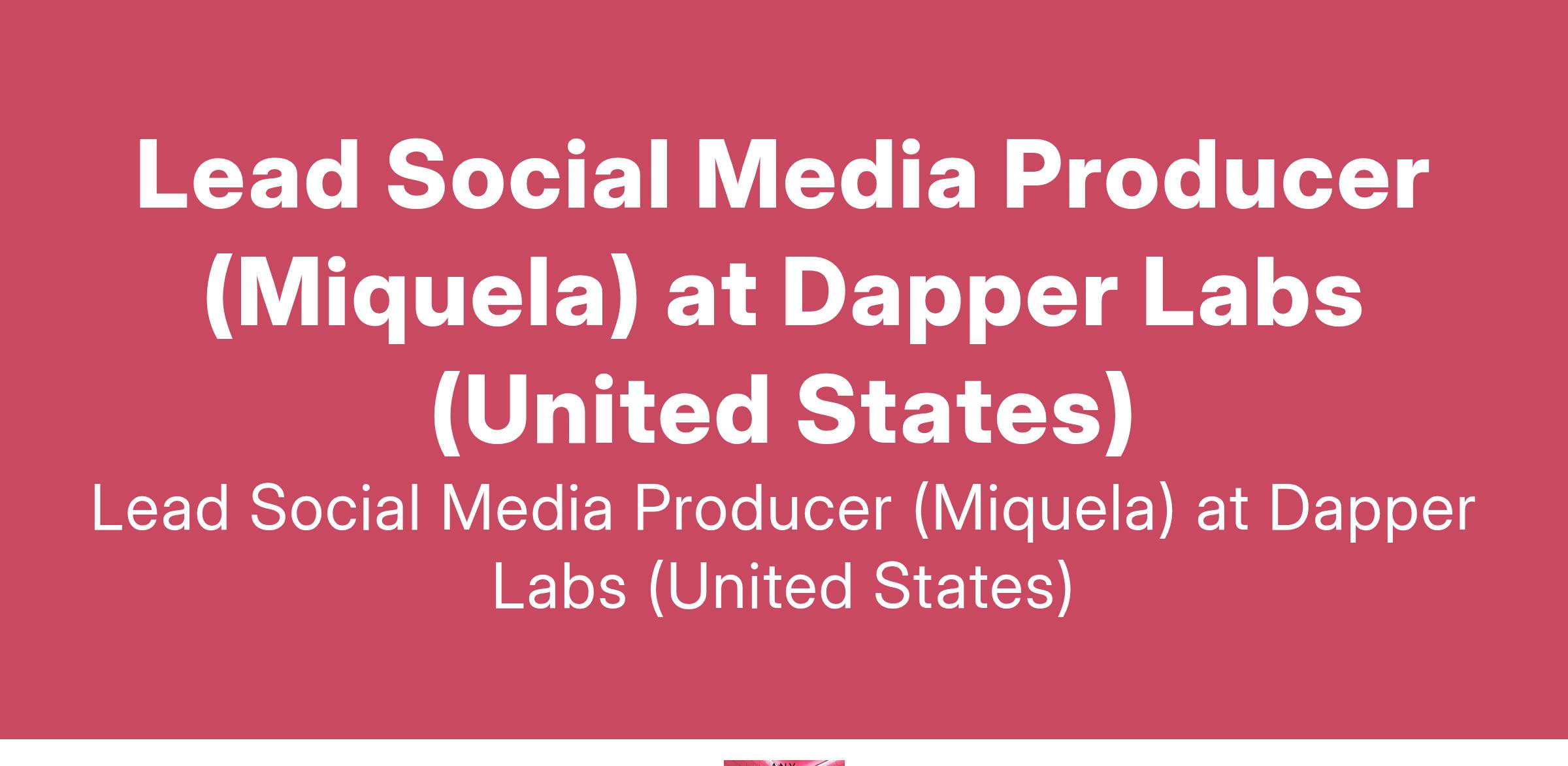 Lead Social Media Producer (Miquela) at Dapper Labs (United States)