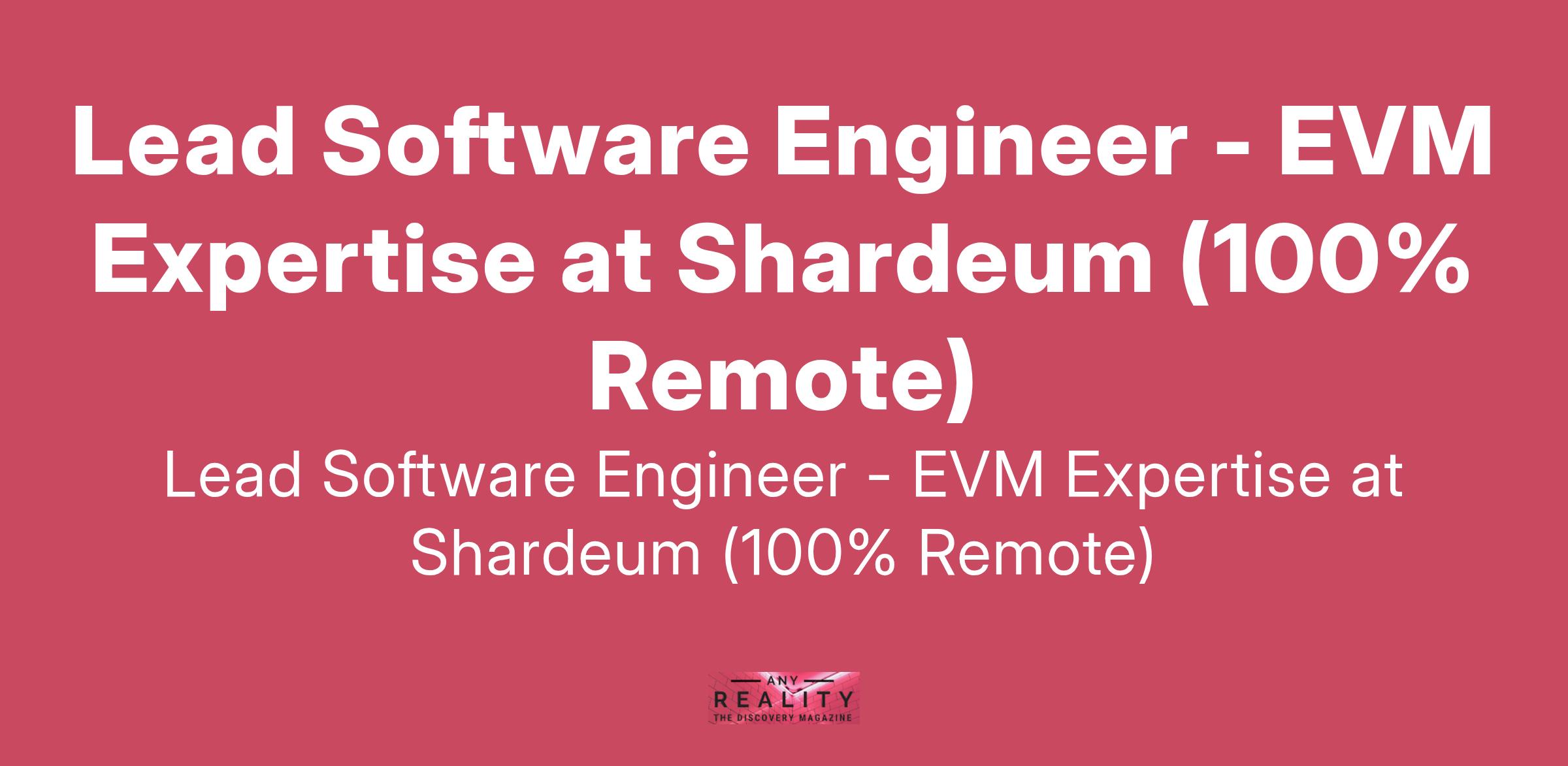 Lead Software Engineer - EVM Expertise at Shardeum (100% Remote)