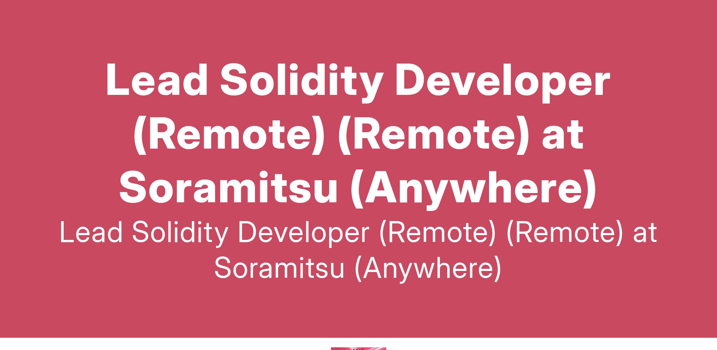 Lead Solidity Developer (Remote) (Remote) at Soramitsu (Anywhere)