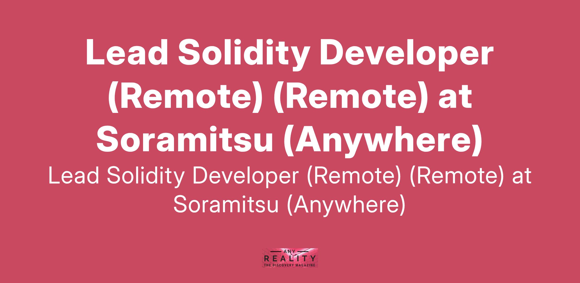 Lead Solidity Developer (Remote) (Remote) at Soramitsu (Anywhere)