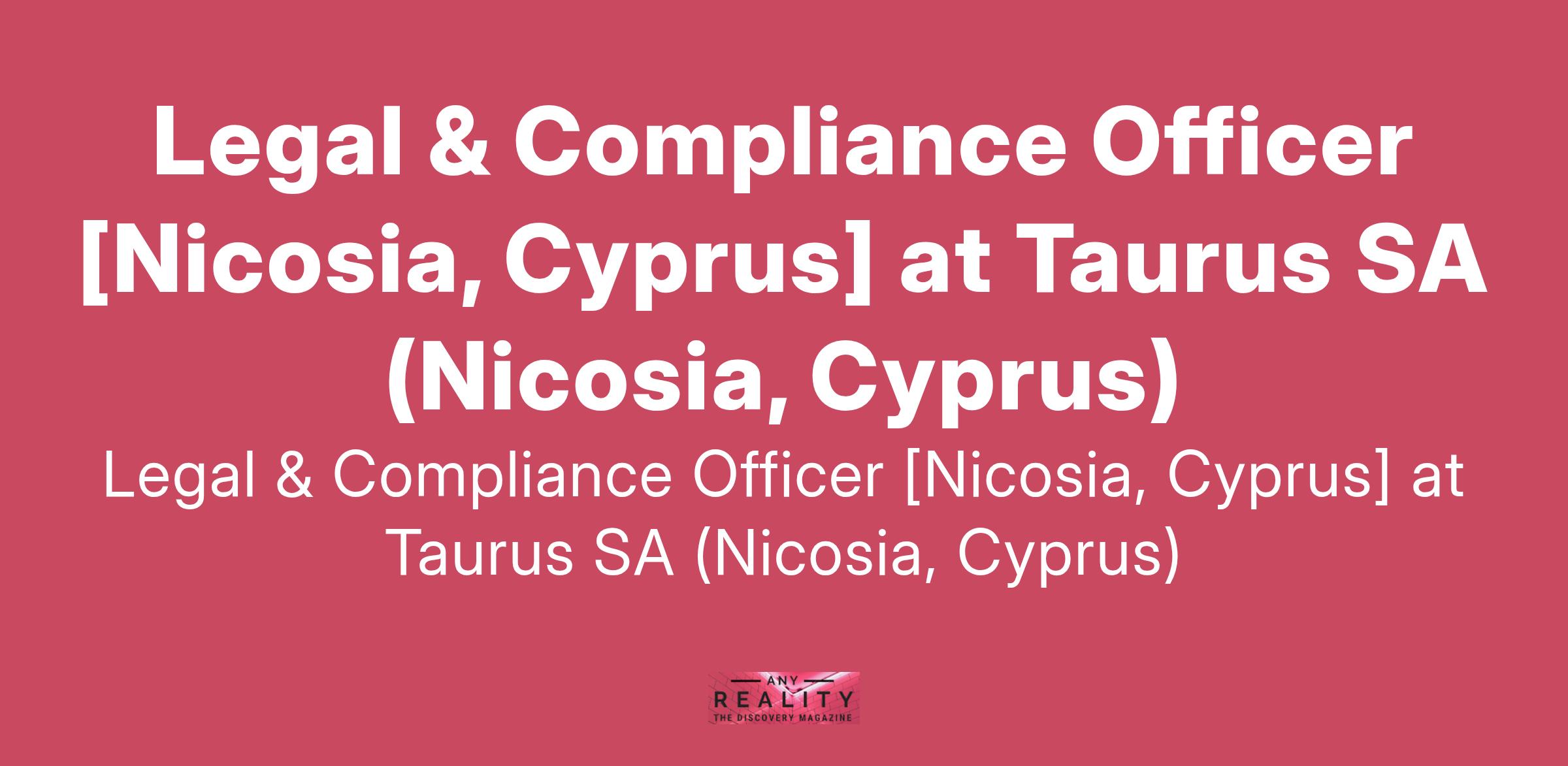 Legal & Compliance Officer [Nicosia, Cyprus] at Taurus SA (Nicosia, Cyprus)