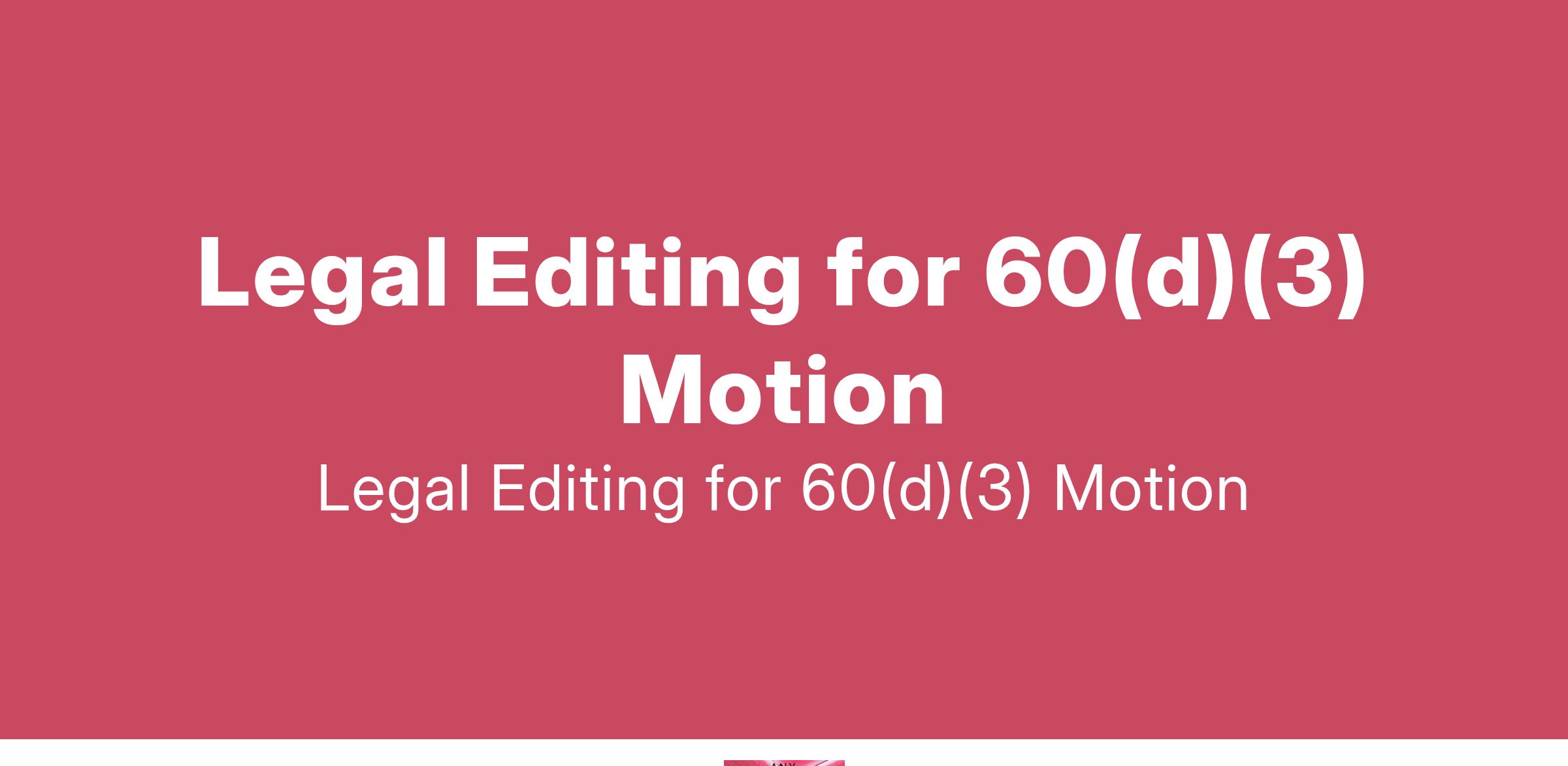 I am seeking an experienced legal editor to review my 60(d)(3) motion. The editing needs to encompass: - Legal Arguments: Ensure the arguments are sound, persuasive and well-structured. - Citations and References: Verify the accuracy and appropriateness of all cited sources... (Budget: $30 - $250 USD, Jobs: Editing, Legal, Legal Research, Proofreading, Research Writing)