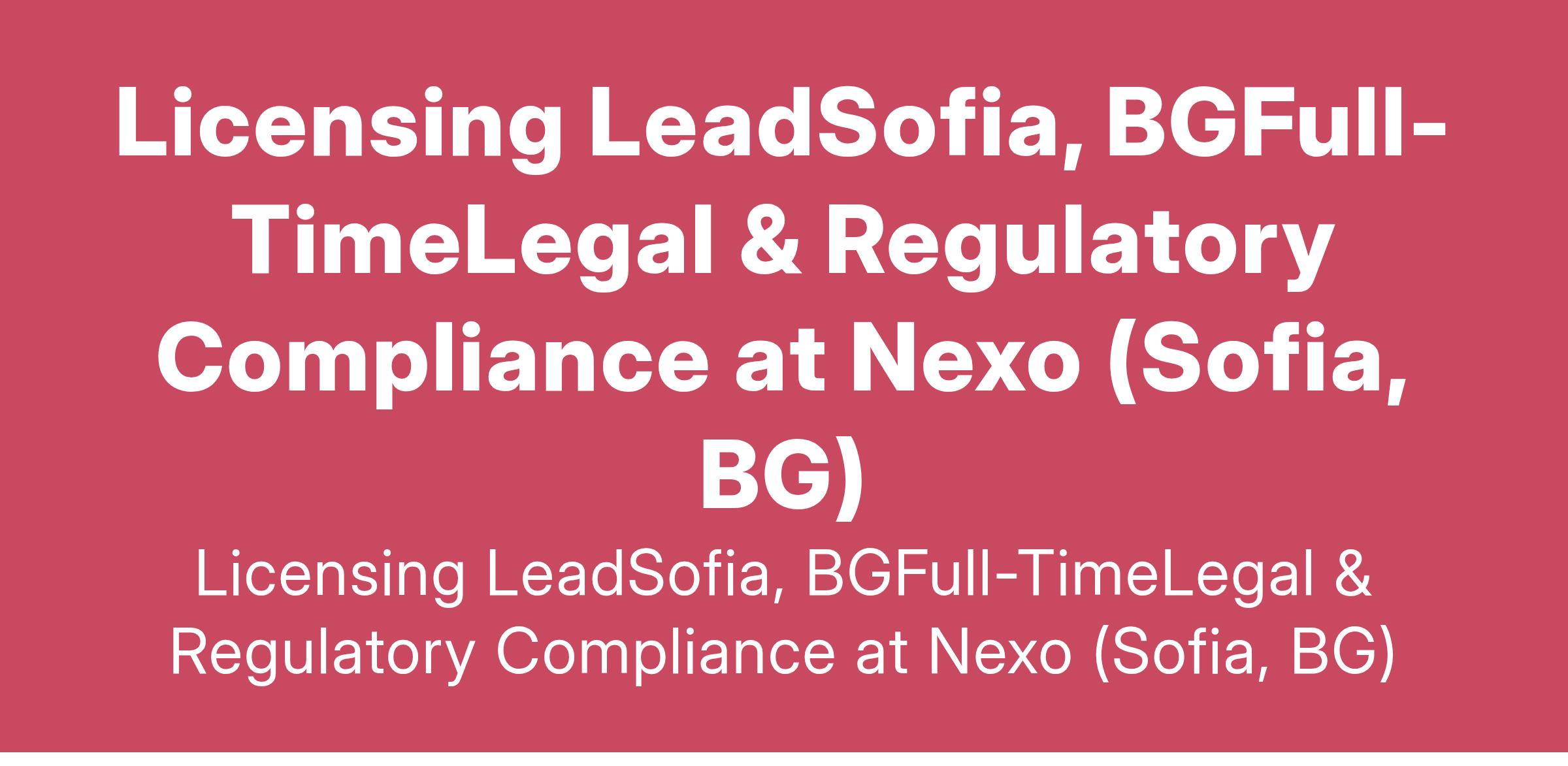 Licensing LeadSofia, BGFull-TimeLegal & Regulatory Compliance at Nexo (Sofia, BG)