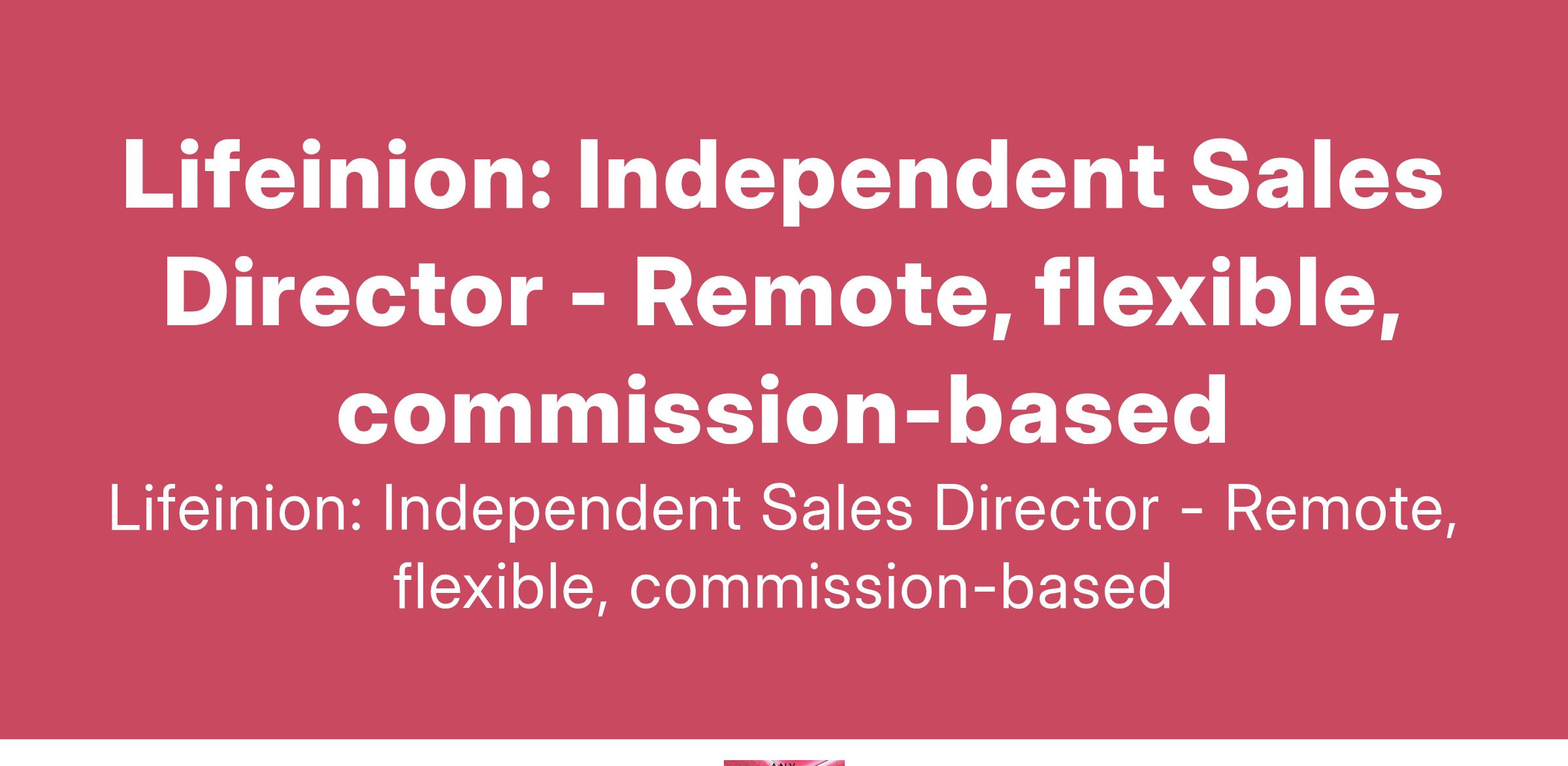To apply: https://weworkremotely.com/remote-jobs/lifeinion-independent-sales-director-remote-flexible-commission-based
