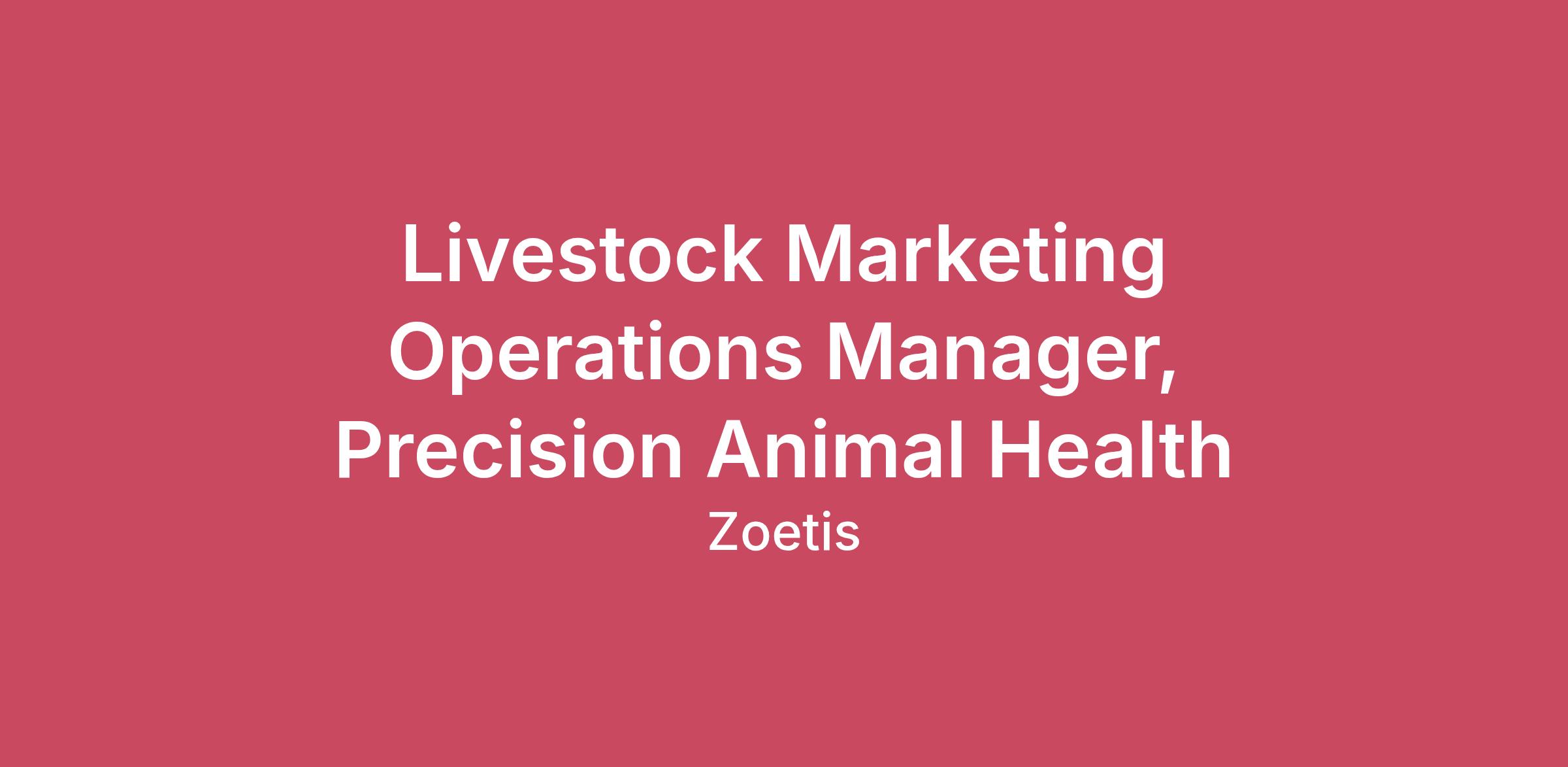 Livestock Marketing Operations Manager - Precision Animal HealthPrecision Animal Health (PAH) is seeking a Livestock Marketing Operations Manager to lead end-to-end marketing operations across our beef and dairy portfolios. This role serves as the operational backbone of the Livestock Marketing team, driving projects to completion through cross-functional coordination, agency management, budget oversight, and sales enablement. The ideal candidate combines strong project management discipline with the ability to translate technical animal health expertise into clear, compelling customer-facing materials. This is a full-time position reporting into the PAH Livestock Marketing leadership. Key Responsibilities:Agency and Vendor ManagementServe as primary point of contact for Bader Rutter (agency of record) and FWD, managing workflow, timelines and strategic alignmentManage contracted creative resource (Inman Creative), including workload prioritization and deliverable qualityEnsure all external partners adhere to brand standards, compliance requirements and project deadlinesBudget and Financial ManagementOwn and manage the Livestock Marketing budget, including forecasting, tracking and spend reportingTrack POs, invoices and vendor payments through internal systems in coordination with finance and procurementMonitor paid media budgets and performance, ensuring optimization recommendations are documented and actionedSales EnablementDrive Beef Team sales enablement, developing tools and assets that empower the field sales organizationTranslate technical product knowledge into customer-ready messaging such as sales decks, one-pagers, FAQs and use-case sheetsAlign messaging with commercial strategy across beef and dairy portfoliosMarketing Project ManagementPlan, manage and deliver marketing projects from brief through distribution across the full livestock portfolioCoordinate cross-functional stakeholders, agencies and vendors; create timelines, manage risks and maintain speed to marketManage tasks in Asana including assignments, due dates, dependencies and status trackingReview Coordination and ComplianceManage Marketing Legal and Regulatory Review through defined stage gates and approvalsMaintain trails of feedback, redlines and final approvals across all deliverablesEarned and Paid MediaOversee earned media engagements including outreach coordination, briefing materials and press responsesManage paid media buys with agency partners, including brief development, asset readiness and flight schedulingQualifications:Required5+ years of experience in marketing operations, project management, or marketing management, preferably within animal health, agriculture, or life sciencesDemonstrated experience managing external agencies and creative vendorsProven ability to manage marketing budgets with financial rigor and accountabilityStrong project management skills with experience using tools such as Asana or similar platformsExcellent written and verbal communication skills, with the ability to translate complex technical content into clear, customer-facing materialsExperience developing sales enablement content and partnering with commercial teamsStrong organizational skills with the ability to manage multiple projects simultaneously and adapt to shifting prioritiesPreferredExperience in the livestock or animal health industry, with familiarity across beef and dairy segmentsBackground in managing paid and earned media programsExperience navigating legal and regulatory review processes for marketing materialsFamiliarity with procurement and finance workflows related to vendor managementBachelor’s degree in Marketing, Communications, Agriculture, Animal Science, or a related fieldCore CompetenciesOperational Excellence — Brings rigor, structure, and accountability to every project and processCross-Functional Leadership — Effectively influences and coordinates across internal teams, agencies, and external partners without direct authorityCommercial Acumen — Understands how marketing assets drive sales outcomes and prioritizes accordinglyAdaptability — Thrives in a fast-paced environment where priorities shift and speed to market mattersAttention to Detail — Maintains high standards for quality, accuracy, brand consistency, and complianceThe US base salary range for this full-time position is $72,000 - $118,000. Our salary ranges are determined by role, level, and location. The range displayed on each job posting reflects the base pay target range for new hire salaries for the position. Within the range, individual pay is determined by work location and additional factors, including job-related skills, experience, and relevant education or training. This position is also eligible for short-term incentive compensation.This position is also eligible for long-term incentives. In addition to compensation, Zoetis offers a comprehensive benefits package that supports the physical, emotional and financial wellbeing of our colleagues and their families including healthcare and insurance benefits beginning on day one, a 401K plan with a match and profit-sharing contribution from Zoetis, and 4 weeks of vacation. Visit zoetisbenefits.com to learn more. Full time Regular Colleague Any unsolicited resumes sent to Zoetis from a third party, such as an Agency recruiter, including unsolicited resumes sent to a Zoetis mailing address, fax machine or email address, directly to Zoetis employees, or to Zoetis resume database will be considered Zoetis property. Zoetis will NOT pay a fee for any placement resulting from the receipt of an unsolicited resume.Zoetis will consider any candidate for whom an Agency has submitted an unsolicited resume to have been referred by the Agency free of any charges or fees. This includes any Agency that is an approved/engaged vendor but does not have the appropriate approvals to be engaged on a search. Notice: Zoetis Recruiters will contact candidates via email from an address end