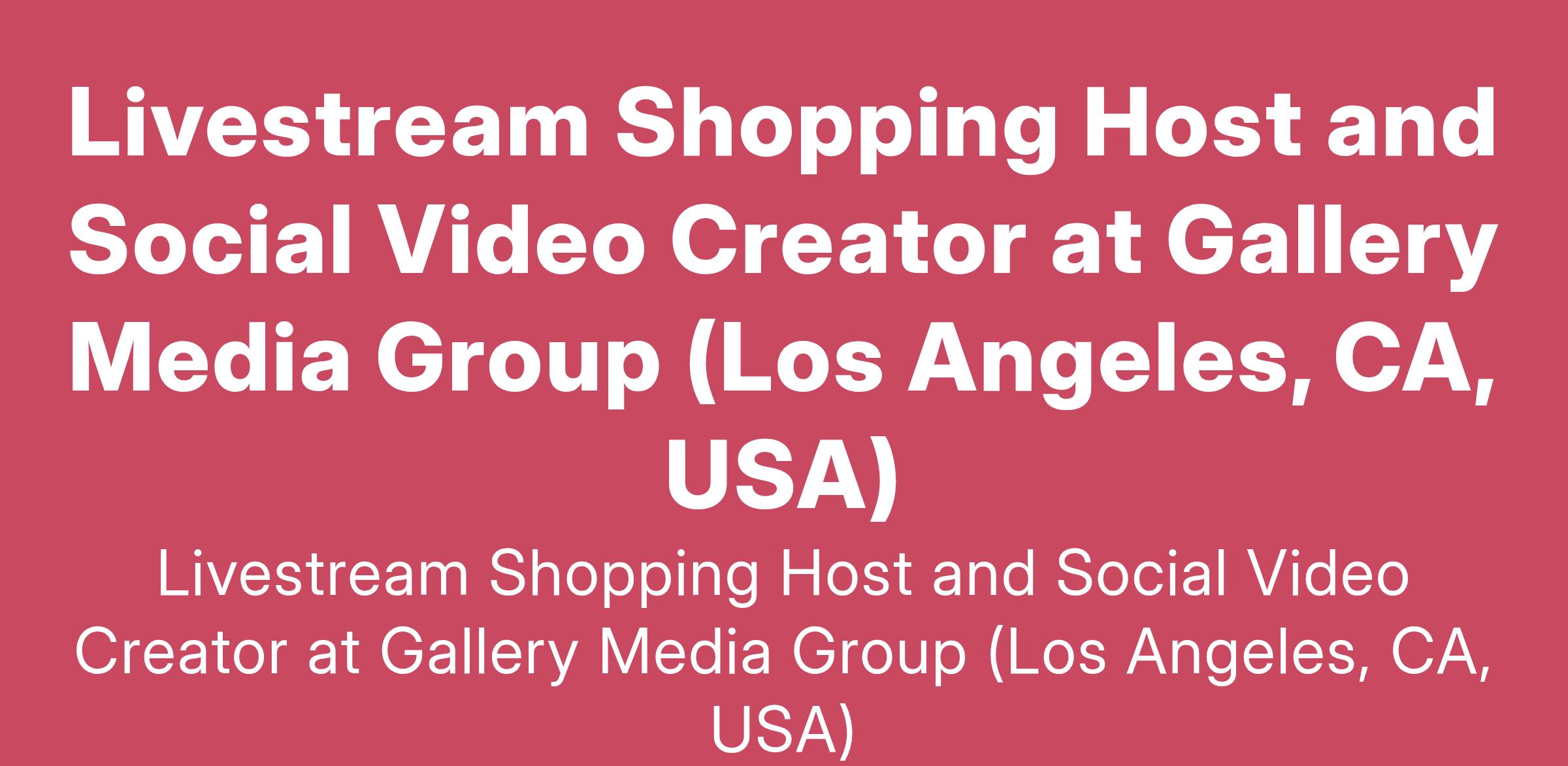Livestream Shopping Host and Social Video Creator at Gallery Media Group (Los Angeles, CA, USA)