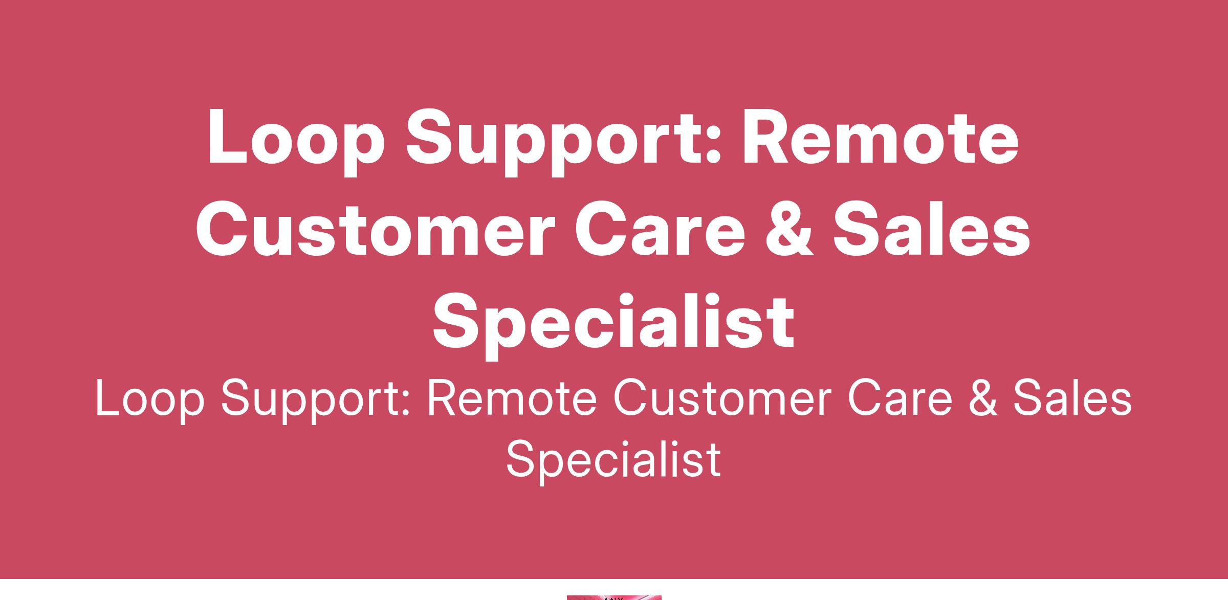 To apply: https://weworkremotely.com/remote-jobs/loop-support-remote-customer-care-sales-specialist