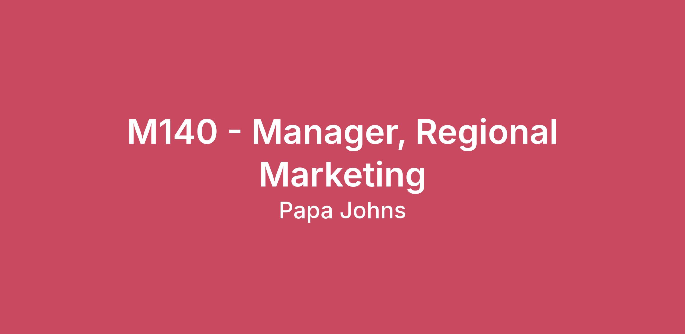 M140 - Manager, Regional Marketing