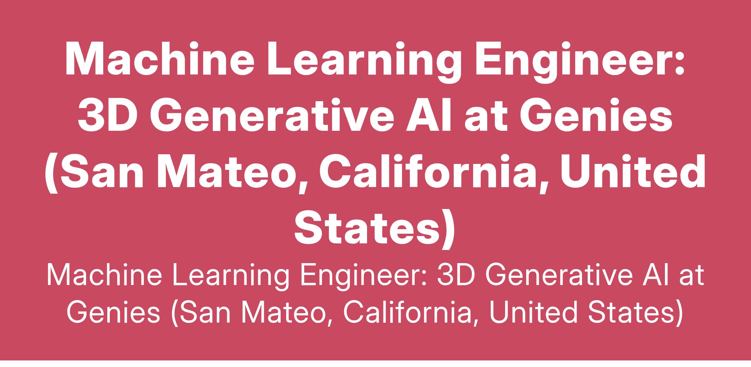 Machine Learning Engineer: 3D Generative AI at Genies (San Mateo, California, United States)