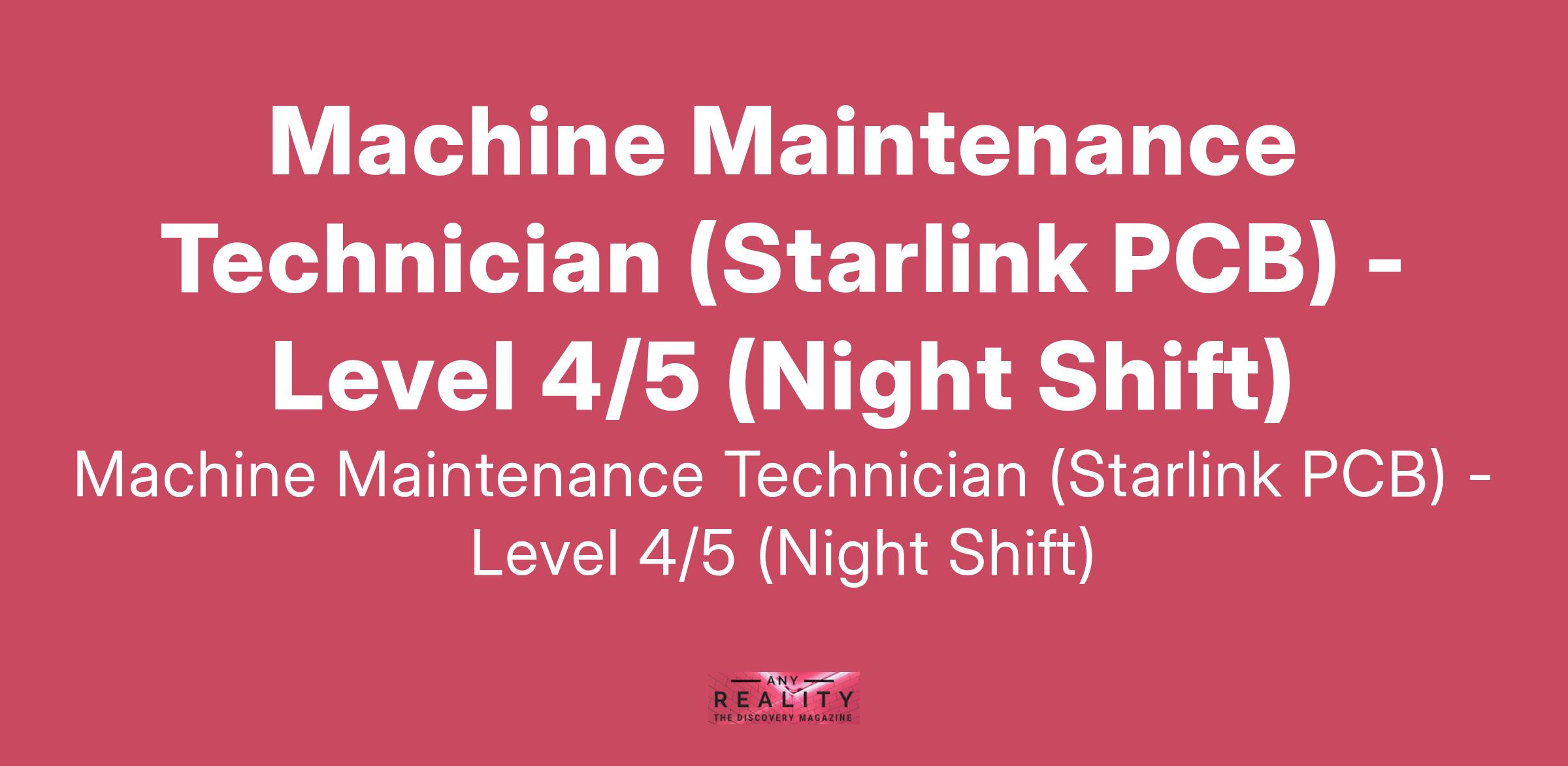 Machine Maintenance Technician (Starlink PCB) - Level 4/5 (Night Shift)