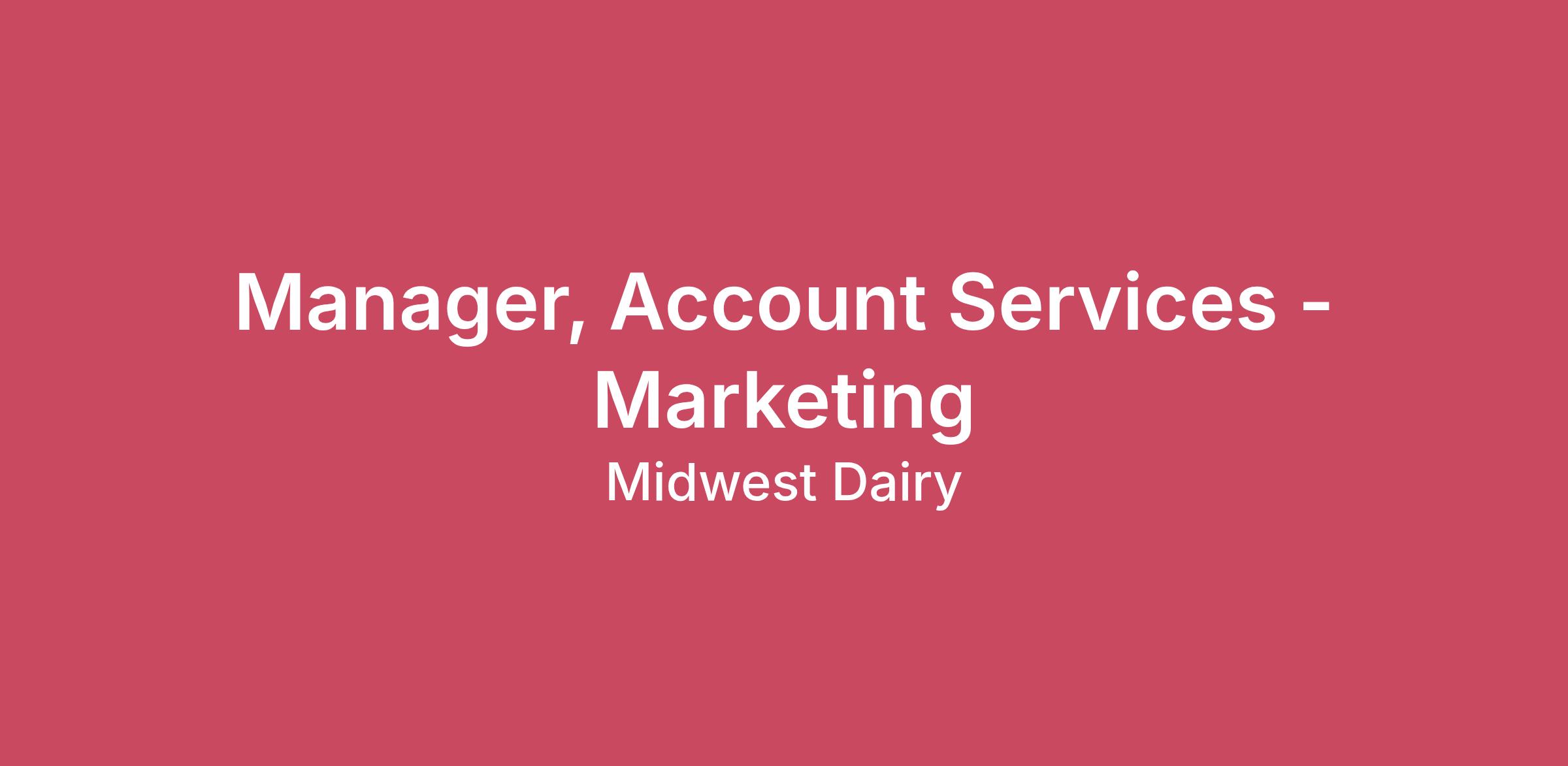 At Midwest Dairy, we’re driven by a shared purpose, to build dairy demand and create a vibrant future for dairy farmers. We’re looking for a collaborative and results-driven Manager, Account Services to lead integrated marketing initiatives and strengthen partnerships across our organization. This role is ideal for someone who thrives in a fast-paced environment, enjoys managing multiple projects, and excels at building strong relationships while driving campaigns forward. About the Role Purpose:This position is responsible for overseeing the planning, coordination and execution of integrated marketing campaigns across print, digital, social, and experiential channels. This role bridges client needs, internal creative development and integrity, and execution workflows. This position ensures projects are delivered on time, on budget, and to the highest quality. As the Manager, Account Services, you will serve as a key connector between partners, internal teams, and campaign execution. You’ll lead projects from concept through completion, ensuring alignment, efficiency, and strong results across all channels. About Us We know our people are what make our work meaningful. When you join Midwest Dairy, you’re part of a purpose-driven organization that supports dairy farmers while building trust and connection with consumers. We offer a collaborative, team-oriented environment where your work has real impact and we support our employees with a strong and competitive benefits package. Our benefits include: Medical, dental, and vision insurance 401(k) with employer contributions Generous paid time off Employee Assistance Program (EAP) Professional development opportunities A mission-driven, collaborative culture What You’ll Do Partnership & Account Management Serve as the primary point of contact for assigned partner accounts, building strong, trusted relationships Partner with stakeholders to understand goals and translate them into actionable deliverables Provide proactive communication, updates, and solutions throughout the campaign lifecycle Campaign Planning, Execution & Performance Lead the planning, scheduling, and execution of integrated marketing campaigns from concept through performance review Coordinate campaign assets across print, digital, social, and experiential channels Facilitate internal reviews and approvals, ensuring alignment with brand standards and partner goals Manage project workflows, timelines, and task assignments to ensure deadlines are met Oversee resources, production schedules, and budgets to maximize efficiency and stay within scope Anticipate challenges, resolve issues, and keep projects moving forward smoothly Track campaign performance and provide insights and recommendations for continuous improvement Team Collaboration Partner closely with creative, design, event, and communications teams to ensure alignment on deliverables Lead cross-functional communication to maintain efficient workflows and accountability Collaborate with Sales & Partnership teams to evaluate campaign effectiveness through metrics, ROI analysis, and reporting What You Bring 5–7 years of experience in account management, marketing, or creative services (agency experience preferred) Bachelor’s degree in marketing, communications, advertising, business, or related field (or equivalent experience) Strong client-facing communication and relationship-building skills Experience managing integrated marketing campaigns across multiple channels Excellent project management skills with the ability to manage multiple priorities simultaneously Strong organizational skills and attention to detail Financial acumen with experience managing budgets and tracking expenses Analytical mindset with the ability to interpret campaign performance and provide insights Collaborative approach with the ability to work effectively across teams Technical Skills Experience with CRM systems (Microsoft Dynamics 365 preferred) Familiarity with project management tools Exposure to accounting or budget tracking systems Additional Details Must reside within Midwest Dairy’s 10-state region Travel up to 15% to support partner and consumer events Occasional evening or weekend availability may be required Join Us If you’re passionate about building strong partnerships, managing impactful campaigns, and working in a collaborative, purpose-driven environment, we’d love to hear from you. Equal Opportunity Employer Midwest Dairy is an Equal Opportunity Employer and is committed to fostering a diverse and inclusive workplace. We welcome applicants from all backgrounds and do not discriminate on the basis of any protected status under applicable federal, state, or local laws.LocationMinneapolis, Minnesota (Remote)DepartmentMarketingEmployment TypeFull-TimeMinimum ExperienceMid-levelCompensation$60,000-$90,000