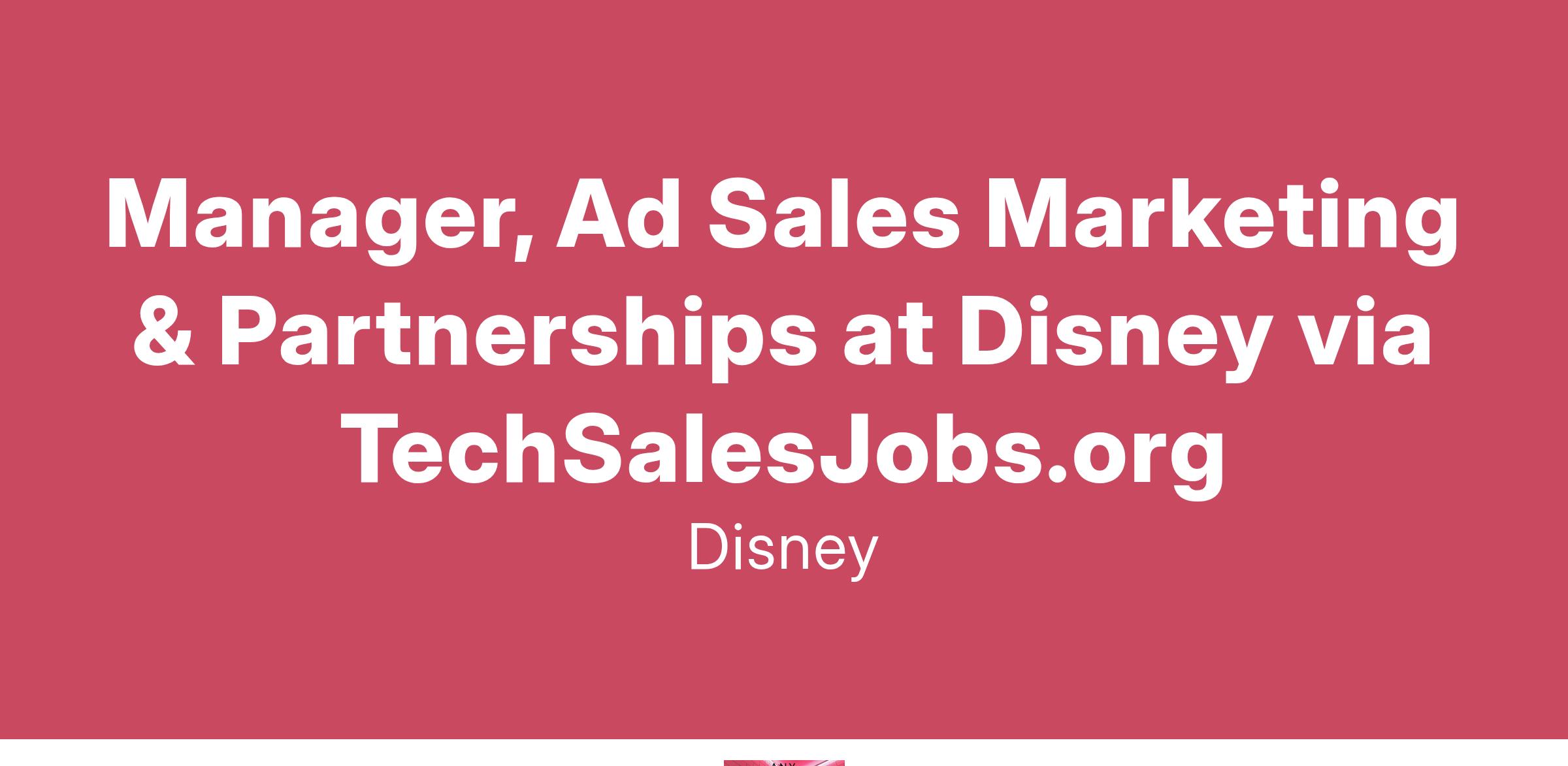 The Ad Sales Marketing & Partnerships team at Disney Advertising is responsible for driving addressable revenue through storytelling and solutions by focusing on Audience, Automation, Measurement, Innovation and Partnerships and to enable the sales organization with resources and tools to more effectively sell and succeed. We are a group of creative problem-solvers and collaborators who aren’t afraid of the unknown. We love to learn, embrace change, and we ask smart questions to devise viable, revenue-driving solutions in this fast-paced, dynamic environment.