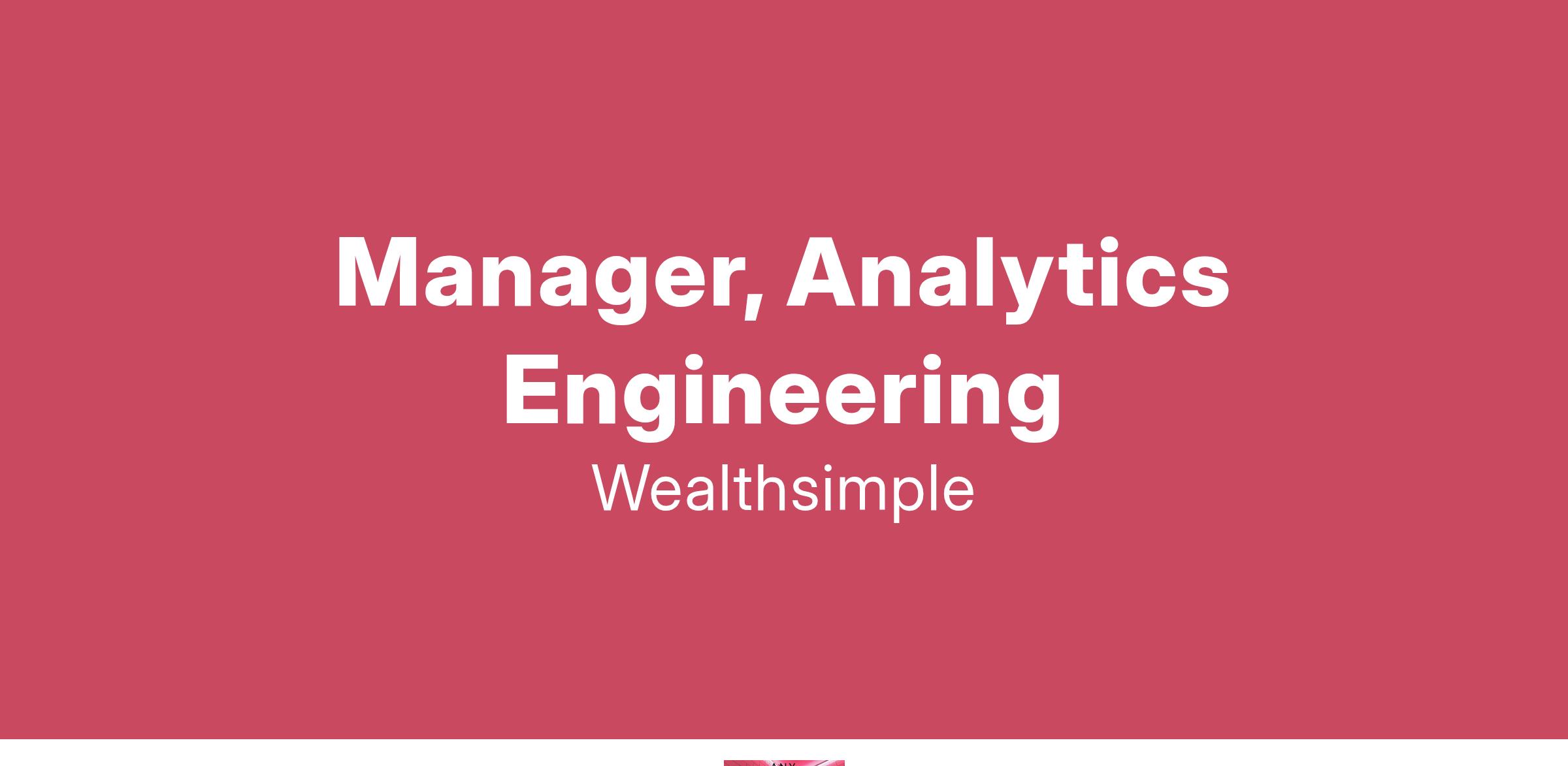 Manage the partnership with our Product and Engineering teams to support works across some of Wealthsimple's highest priority effortsLead a best-in-class team of data scientists and analytics developers and grow each individualBuild robust, efficient, and integrated data models in cloud data warehouses that will be used as the source of truth for analytics across the Investing product organization Set organizational standards and influence our data science and engineering culture Apply software engineering best practices like version control and continuous integration to the analytics code base; ensure data models are well tested, documented, and maintained Translate business requirements into data models and analysis that will help stakeholders answer key business questions and inform strategic decisionsContinuously look for the simplest, most effective way to approach challenges; Occam's razor is your friendTake ownership and ship it Empower the team by leveraging their diverse educational backgroundsWork where you are (while our Canadian offices are located in Toronto, we are a remote-first workforce and you can join from anywhere in Canada!) Who you are:
