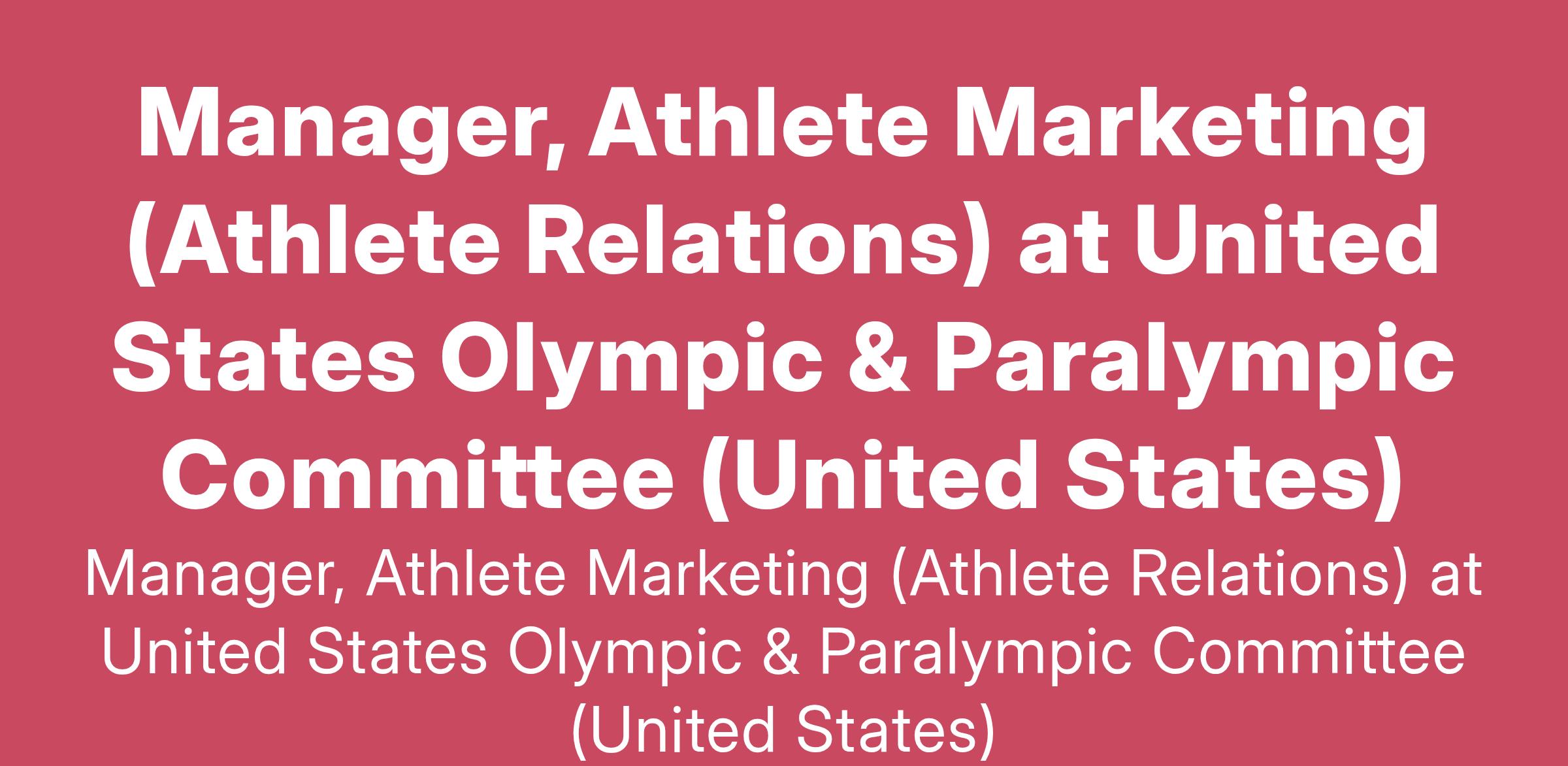 Manager, Athlete Marketing (Athlete Relations) at United States Olympic & Paralympic Committee (United States)