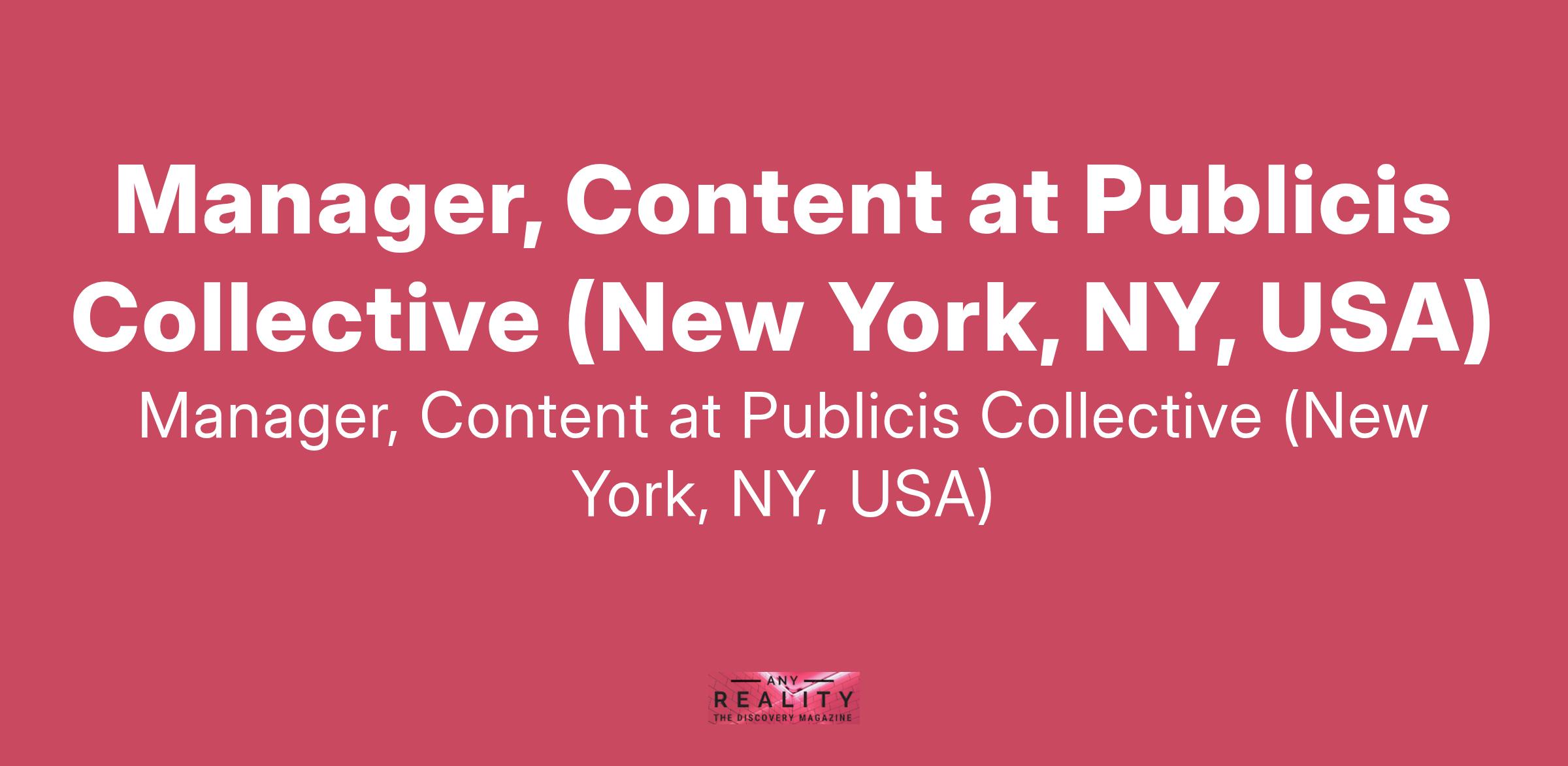Manager, Content at Publicis Collective (New York, NY, USA)