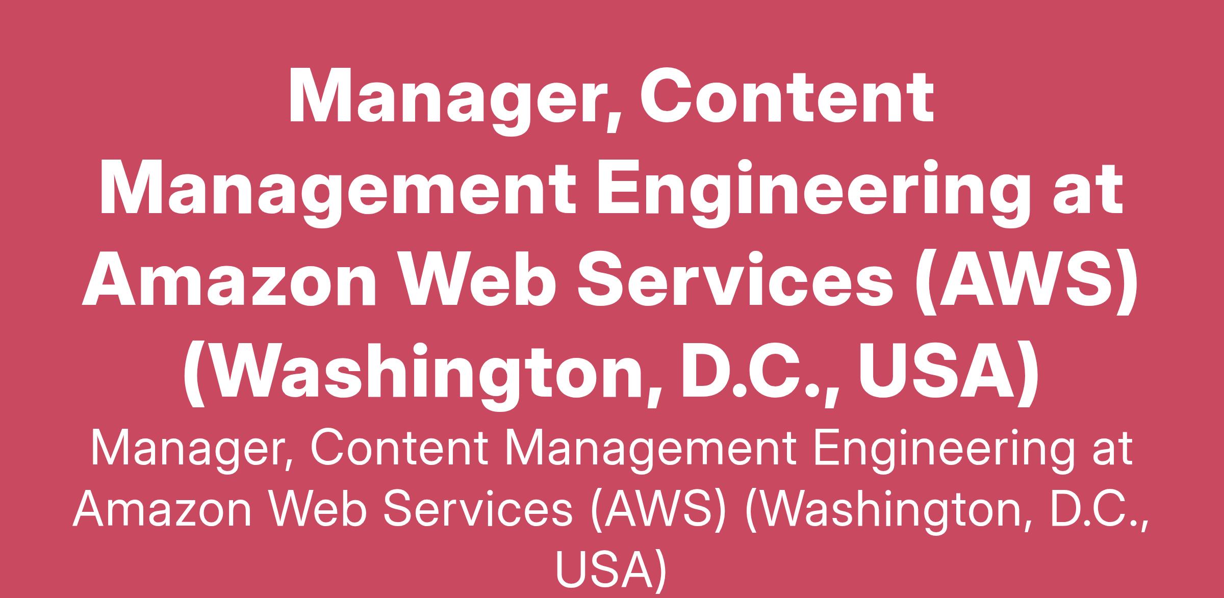 Manager, Content Management Engineering at Amazon Web Services (AWS) (Washington, D.C., USA)