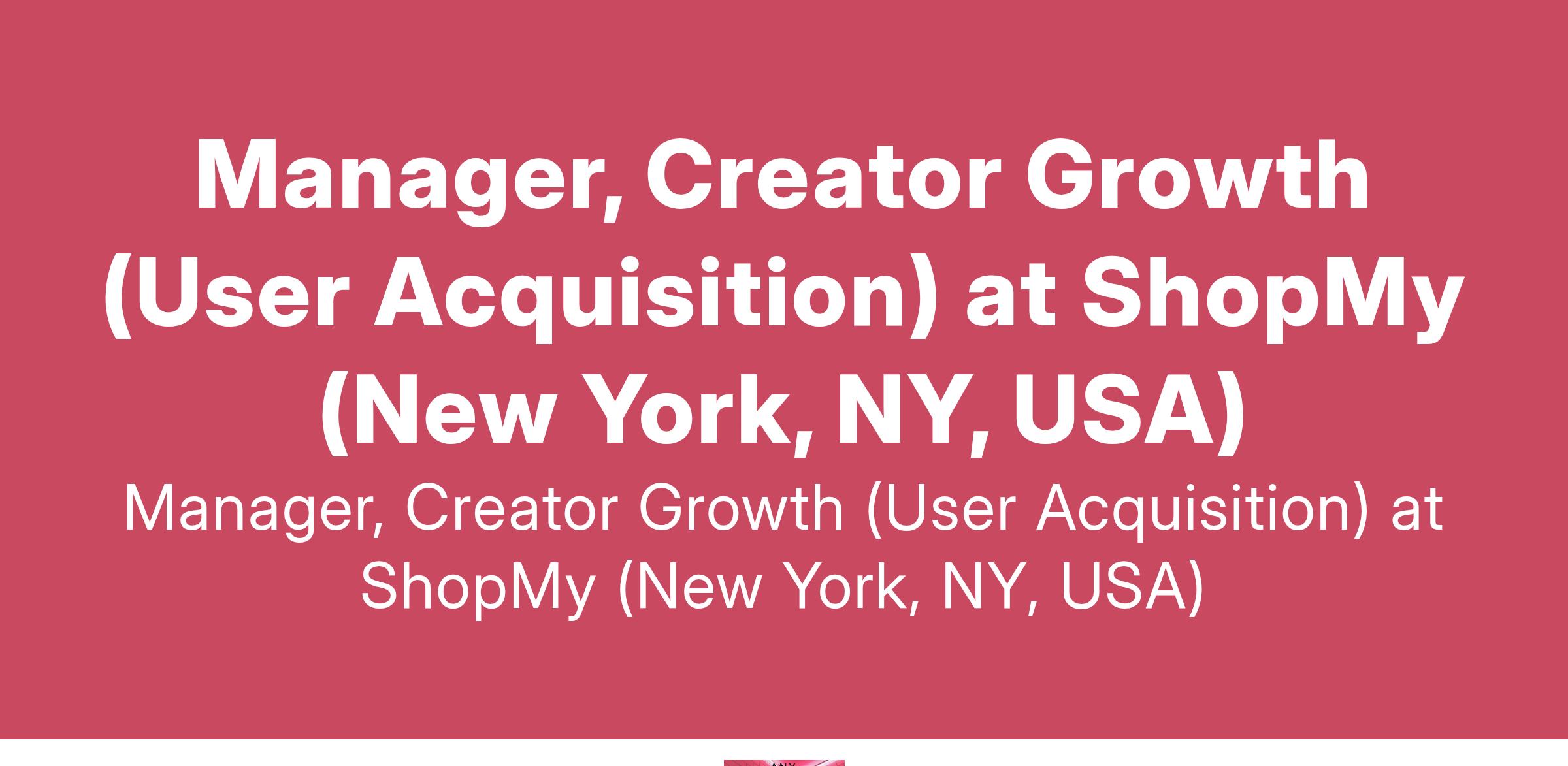 Manager, Creator Growth (User Acquisition) at ShopMy (New York, NY, USA)