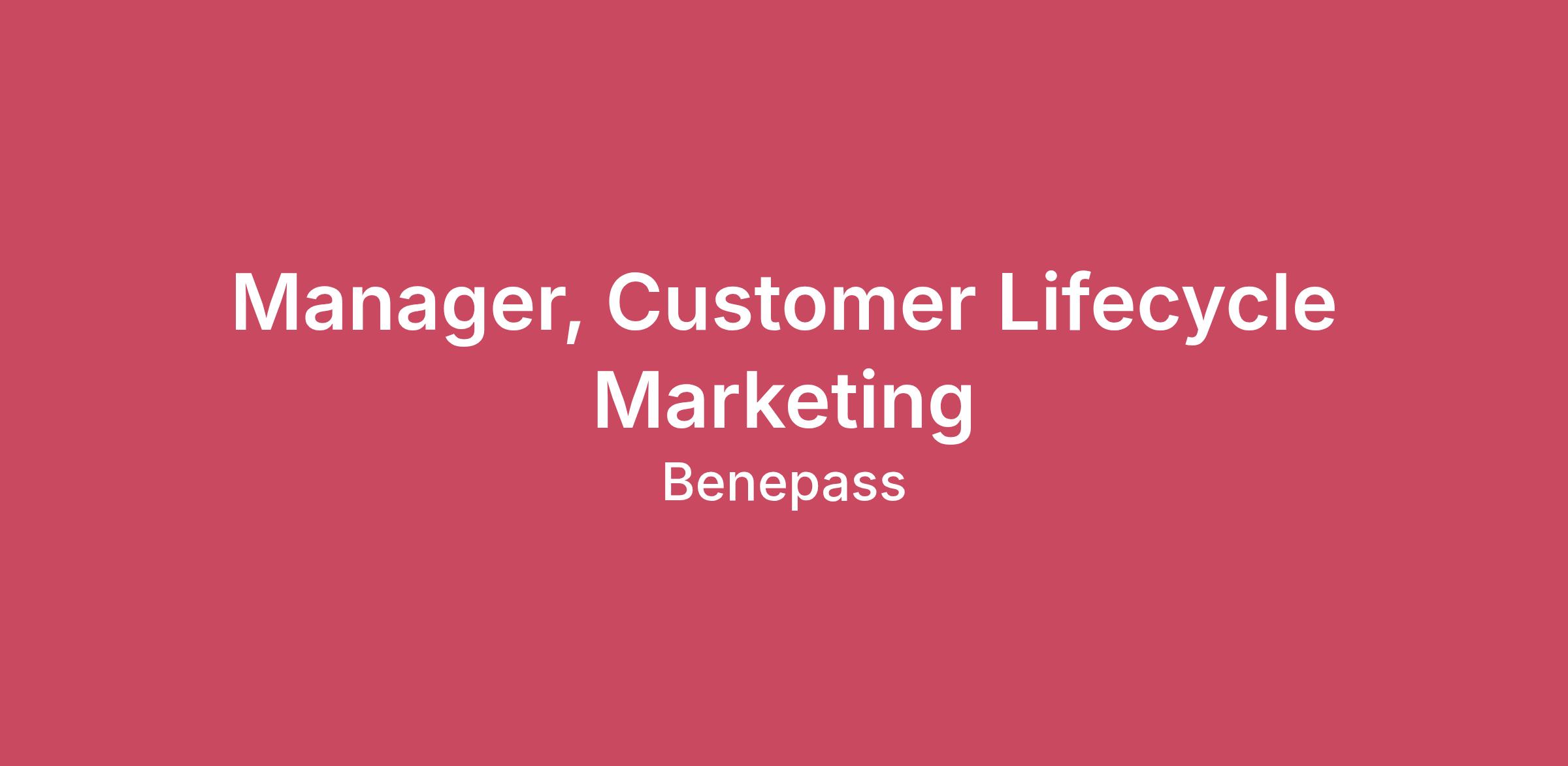About UsAt Benepass we're making benefits easy. We believe people are the most important asset to any company. Traditional one-size-fits-all benefits packages no longer cut it in today's hybrid and remote-first environment. With Benepass, companies can tailor their benefits to the unique needs of their workforce.Through our easy-to-use and highly customizable fintech platform, People teams can implement, administer, and track the benefits that meet employees where they are. Employers design their benefits and perks plan by setting a contribution amount and eligible spend categories. Every employee has their own individual definition of wellness and needs different things to help them be their most productive, fulfilled self.Our MissionHelping companies reimagine how companies take care of their people.Our InvestorsWe are backed by leading investors, including Portage Ventures, Threshold Ventures, Gradient Ventures, Workday Ventures, and Clocktower Technology Ventures. To date, the company has raised $35 million of equity capital.ArticlesFounder Story - Jaclyn ChenBenepass Raises $40M Series BCandidate ResourcesBenepass | Candidate Resource PageBenepass Listed on Inc. Magazine's Best Workplaces of 2023Team & RoleBenepass is hiring a Manager, Customer Lifecycle Marketing to own how we engage customers (employers) and their employees (members) across the full lifecycle.This role is responsible for shaping and executing the post-sale marketing experience, from onboarding and launch through ongoing engagement, open enrollment, and renewal. You will drive how Benepass shows up at each stage, ensuring our benefits are clearly understood, consistently used, and deliver measurable value to both employers and employees.Sitting within Marketing and reporting to Product Marketing, this role partners closely with Customer Success, Customer Experience, Product, and Engineering to bring lifecycle programs to life. Success in this role means improving activation, increasing utilization, and driving long-term customer value across the Benepass platform.What you'll do at BenepassLifecycle Strategy & Journey DesignDefine how Benepass engages customers and members across onboarding, activation, engagement, and renewalBuild lifecycle programs that drive adoption, education, and sustained usageIdentify gaps in the customer journey and develop programs to improve the overall experienceMember Engagement & UtilizationDevelop campaigns that increase benefit awareness, card usage, and program adoptionCreate communications tied to key lifecycle moments (launch, open enrollment, seasonal usage)Translate complex benefits and financial concepts into simple, compelling messagingCustomer Collaboration & Program SupportBuild and manage lifecycle campaigns across email, in-product messaging, printed materials, and other touchpointsOwn segmentation and targeting to deliver relevant messaging to different audiencesEnsure communications are timely, clear, and aligned with customer needsSupport time-sensitive and ad hoc campaigns (e.g., product updates, compliance changes, critical customer communications), ensuring rapid and high-quality executionCross-Functional Alignment & Messaging IntegrationCollaborate with Product Marketing and Customer Success to support launches, renewals, and expansion opportunitiesDevelop scalable frameworks for client-specific communications where neededBalance customization with consistency and operational efficiencyPerformance Tracking & Continuous ImprovementDefine and track lifecycle KPIs (activation, engagement, utilization)Run experiments to improve campaign performance and effectivenessUse insights to inform broader marketing, product, and customer strategyRequirements4-7+ years in customer, member, and/or lifecycle marketing rolesExperience in B2B2C environments or marketing to both business buyers and end usersExperience targeting various user personas across industries, including hard-to-reach populations and HR administratorsStrong experience building and executing lifecycle or engagement campaigns across multiple channelsExcellent writing and communication skills, with the ability to simplify complex conceptsExperience working with CRM or marketing automation platforms (e.g., Customer.io, Braze, Iterable)Comfortable with segmentation, targeting, and event-driven or triggered communicationsStrong cross-functional collaborator, with experience partnering with Customer Success, Product, and EngineeringAnalytical mindset with experience tracking performance and driving optimizationAbility to balance scalable programs with targeted, client-specific initiativesExperience in SaaS, fintech, benefits, healthcare, or similarly complex industries preferredCompensation$110,000-130,000 + EquityRange(s) is subject to change. Benepass takes a number of factors into account when determining individual starting pay, including market comparables, interview performance, peer compensation, and years of experience.What We Offer95% coverage of medical, dental, and visionFantastic benefits (of course ), including:$250 WFH setup (one time)$500/year Learning & Development Benefit$150/month cell phone + internet$100/month Wellness$100/month Co-working and Commuter BenefitWe offer several team onsites a yearFlexible PTOAt Benepass, we are working towards reimaging how companies take care of their people. We are committed to creating an inclusive environment for all our employees and are seeking to build a team that reflects the diversity of the people we hope to serve with our revolutionary products. Benepass is proud to be an equal-opportunity employer.