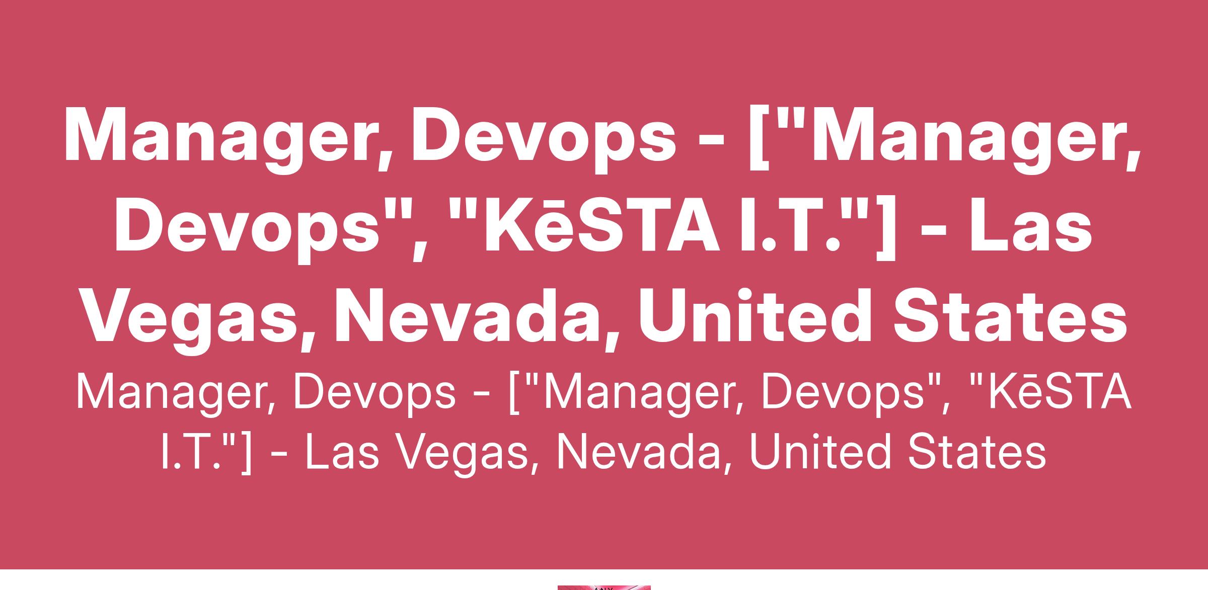 KēSTA I.T. is actively seeking a Manager, DevOps for an immediate full-time opportunity with our industry leading client.