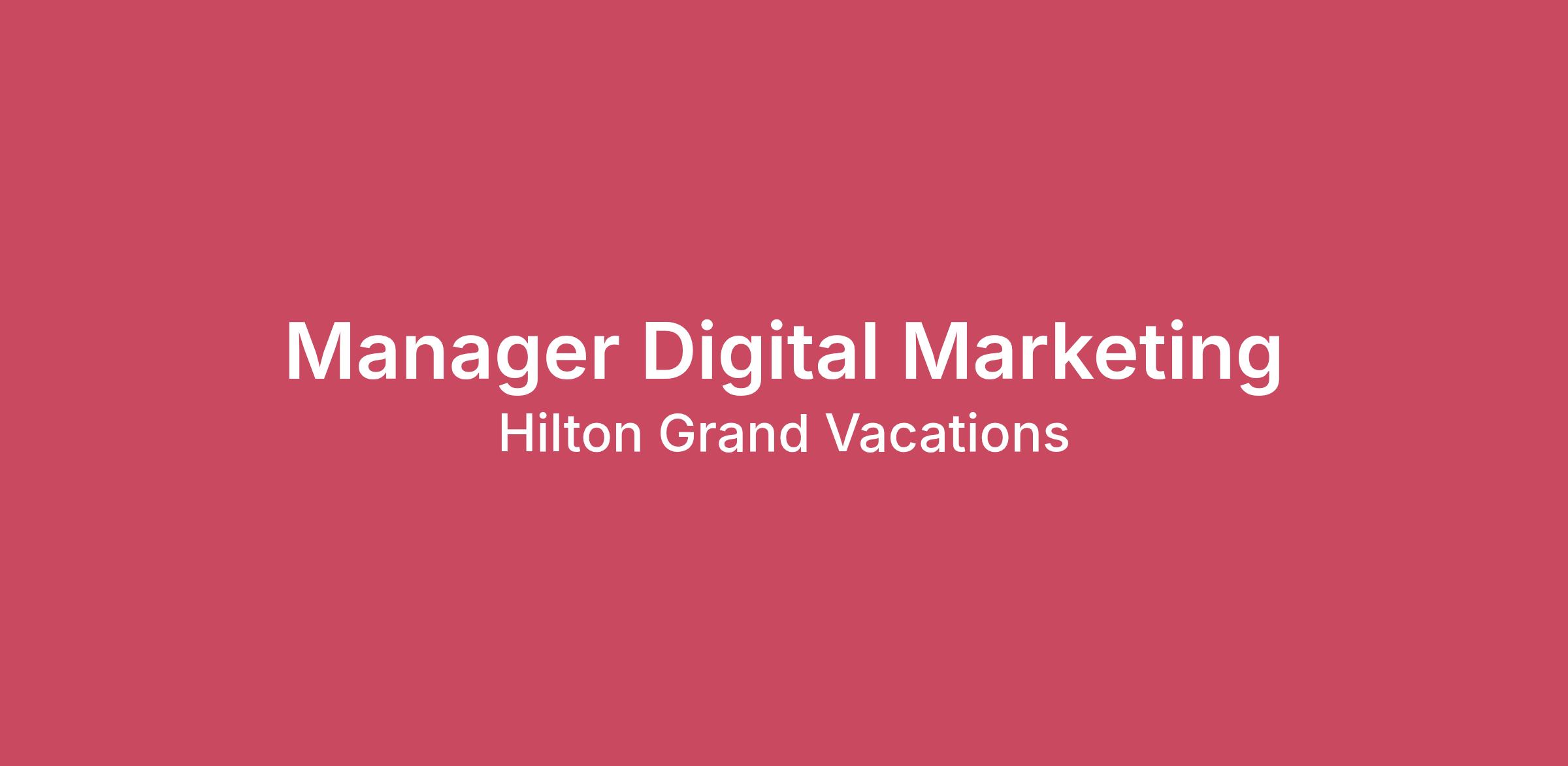 Hilton Grand Vacations is looking for an experienced Manager, Digital Marketing to develop strategic activations marketing campaigns. This position resides within the Digital Marketing team and is responsible for the development and management of campaigns for package activation channels including, but not limited to email, web, SMS and other emerging platforms for the North America region. The ideal candidate will understand email and content marketing basics and will have a proven record of managing marketing projects and new initiatives. This role is key to Hilton Grand Vacation’s activations marketing strategy with high visibility in a fast-paced environment.Position has option to work from Corporate office in Orlando or from home in states in which Hilton Grand Vacations can legally employ.