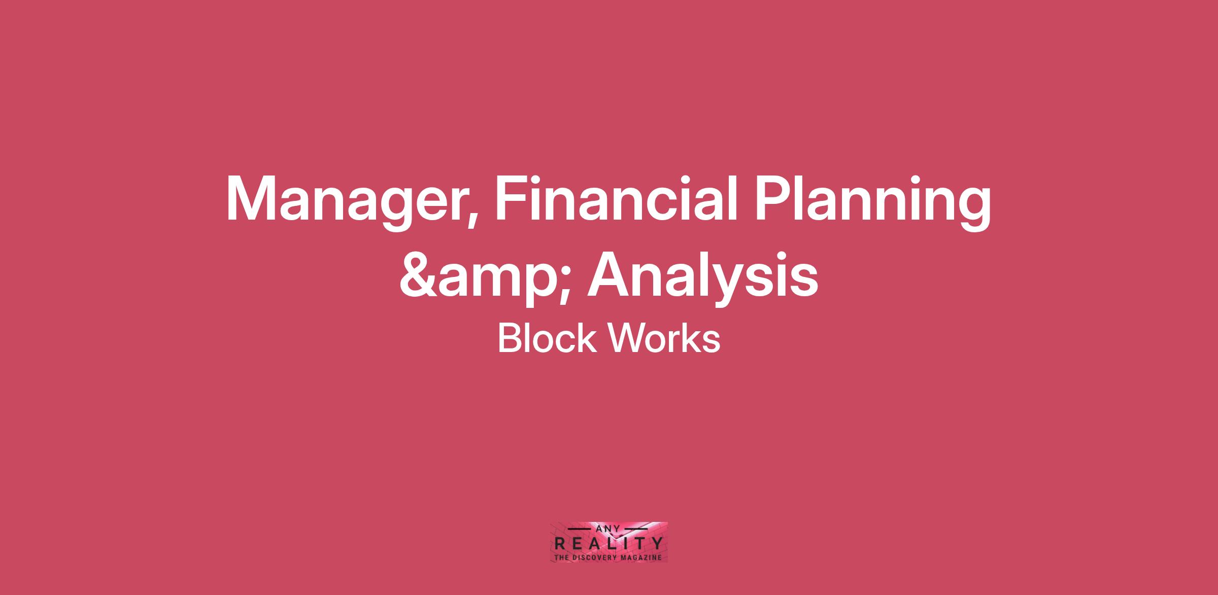 As our Manager of Financial Planning & Analysis, you will provide hands-on leadership in shaping, driving, and executing all Accounting and Finance Operations at Blockworks. You'll be responsible for helping to shape the overall direction for our financial planning and analysis function, including strategy design, process definition and improvement, and overall finance team leadership and organizational support.