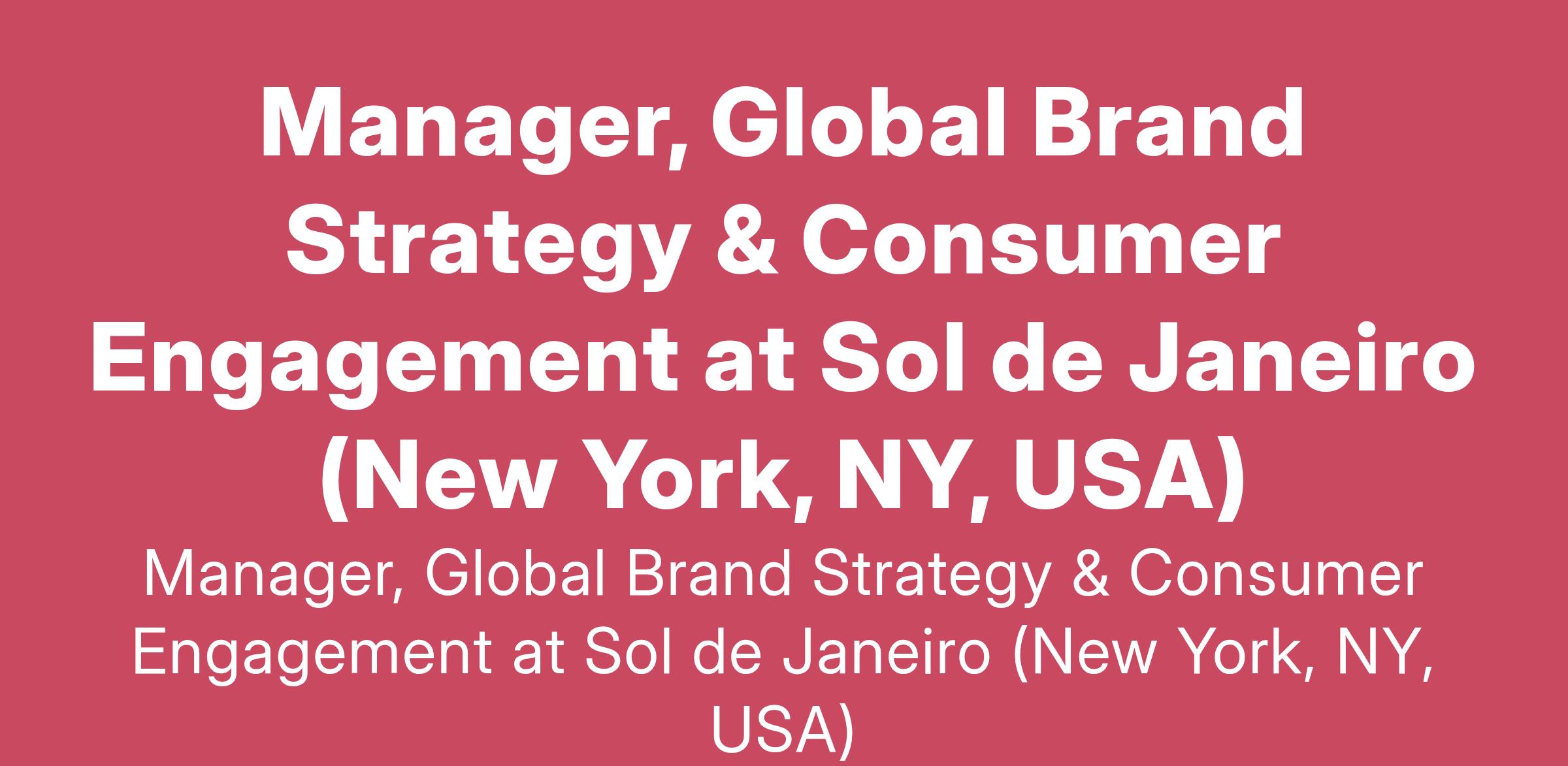 Manager, Global Brand Strategy & Consumer Engagement at Sol de Janeiro (New York, NY, USA)