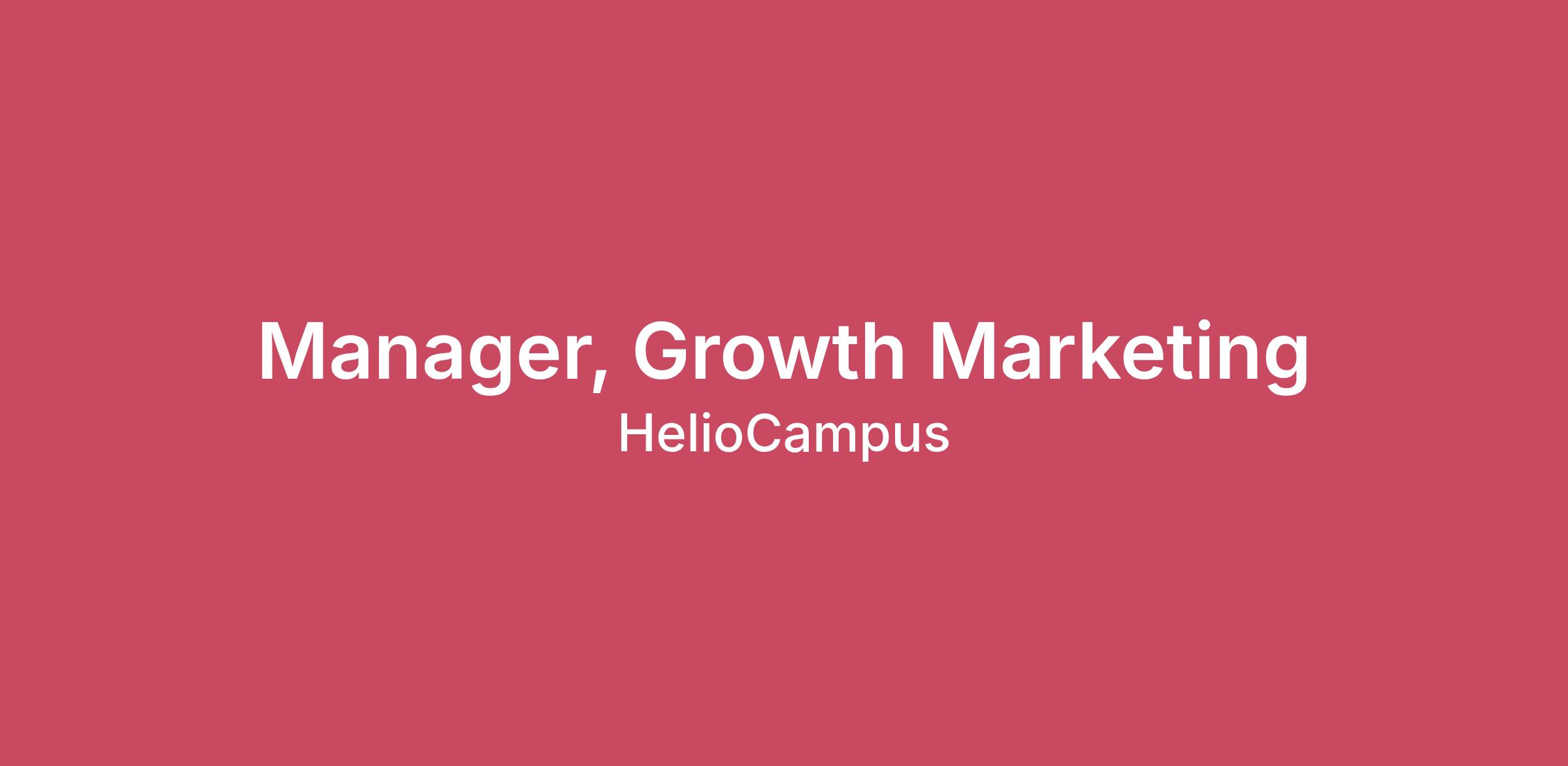 Who We Are: HelioCampus was founded with the purpose of helping college & university leaders navigate today’s growing pressures. As one of EdTech’s most steadily growing companies, our roots in higher ed ground us in the critical nature of this work.What We Do:We help our clients navigate today’s high stakes with data and Institutional Performance Management practices. Together with our clients, we chart a path to sustainability by borrowing practices from the most successful businesses.How We Do It: We approach our work with a “we’re on it” attitude that the higher ed community has come to know and expect from our team. We’re data geeks to our core, committed to simplifying the toughest challenges and operating with transparency. Our most successful team members are change agents who love a challenge.How You'll Help:We are seeking a Manager, Growth Marketing to serve as the architect of lead driving campaigns that fuel our sales funnel. You’ll play a hands-on, high-impact role in determining the channels and offers that help our personas understand who we are and what we do in support of our revenue targets. You’ll work closely with the VP, Growth Marketing, to innovate and iterate on themes, channels, and technology to adopt best practices and elevate our marketing engine. What You Will Do:Design, build, and launch multi-channel campaigns that drive high-quality awareness and intentAct as the primary Hubspot owner for the team (with Ops support) to build and automate landing pages, emails, webinars, and workflows that power lead generation and engagementCollaborate with Product Mktg, Brand & Comms, and others to craft copy that hooks and design landing pages that convertDive into Hubspot, Salesforce, ad platforms, and other tools to see what’s working, apply learnings, and help propel the team forwardMonitor and report campaign performance - from Hubspot to Salesforce, Marketing to Sales - and push forward next steps or optimizations at a rigorous paceLeverage AI tools to accelerate production and execution, helping our team stay agile and high-outputSupport the overall GTM function to illustrate the value of HelioCampus to prospects and customers to improve conversion rates from MQL to opportunityYou Will Be a Good Fit For This Role If You Have:Bachelor’s degree (or equivalent combination of education and experience in marketing)2–3 years of growth marketing or demand generation experience (B2B SaaS or edtech preferred)Experience with HubSpotAbility to execute across multiple channels (email, paid, social) with deep expertise in at least oneStrong analytical skills and ability to translate performance data into creative pivotsExceptional written and verbal communication skillsStrong project management and time management skillsCollaborative mindset and comfort working cross-functionallyExperimentation mindset, including adoption of emerging tools and AIAbility to travel up to 10%Nice To Have’s Include: Salesforce preferredFamiliarity with CanvaLocation:HelioCampus has two locations, Bethesda, MD and Chapel Hill, NC. This specific role is primarily remote, with occasional travel to an office or client site.Compensation and Benefits:HelioCampus offers employees a competitive salary along with paid time off, healthcare, vision, dental, 401(k) w/ company match, parental leave, remote work flexibility, home office perks, and a fun, collaborative work environment.What Sets Us Apart:1. Commitment to Higher Education: We believe that serving higher ed makes the world a better place. This drives our desire to deliver high-quality products and services to help higher education institutions serve their students and communities. 2. Flexibility to Fit Your Life: HelioCampus employees enjoy the autonomy, freedom, and trust of a remote-first working environment. We embrace an “on it” mentality both in and out of the workplace, and employees are supported in pursuing personal and professional passions. 3. A Community of Bright Minds with Big Hearts: HelioCampus hires curious and talented practitioners who bring a diversity of thought and genuine care for one another and our clients to work every day. Our team members are more than a job description and are encouraged to show up as their full and authentic selves. What We Believe:HelioCampus is an equal opportunity employer, and all qualified candidates will receive consideration for employment without regard to race, color, religion, sex, sexual orientation, gender identity, national origin, disability or veteran status.Disclaimer:The list of responsibilities described above is not comprehensive. Other tasks not mentioned here may be required. Changing business conditions may trigger changes to job responsibilities. This job description is not an employment contract.Physical Qualifications:This position requires the following physical qualifications to support a productive remote work environment. We are dedicated to providing reasonable accommodations for individuals with disabilities to perform the essential functions of this role. If you require accommodations, please discuss this during the application process.Vision: Sufficient visual acuity to read documents, view computer screens, and engage in tasks that require attention to detail.Hearing: Ability to communicate effectively in person (as applicable) and via phone or video conferencing, ensuring clear understanding of verbal instructions.Fine Motor Skills: Proficient use of hands for typing, using a mouse, and managing office equipment such as printers and scanners.Lifting: Occasional lifting of up to 10 pounds (e.g., office supplies or equipment).